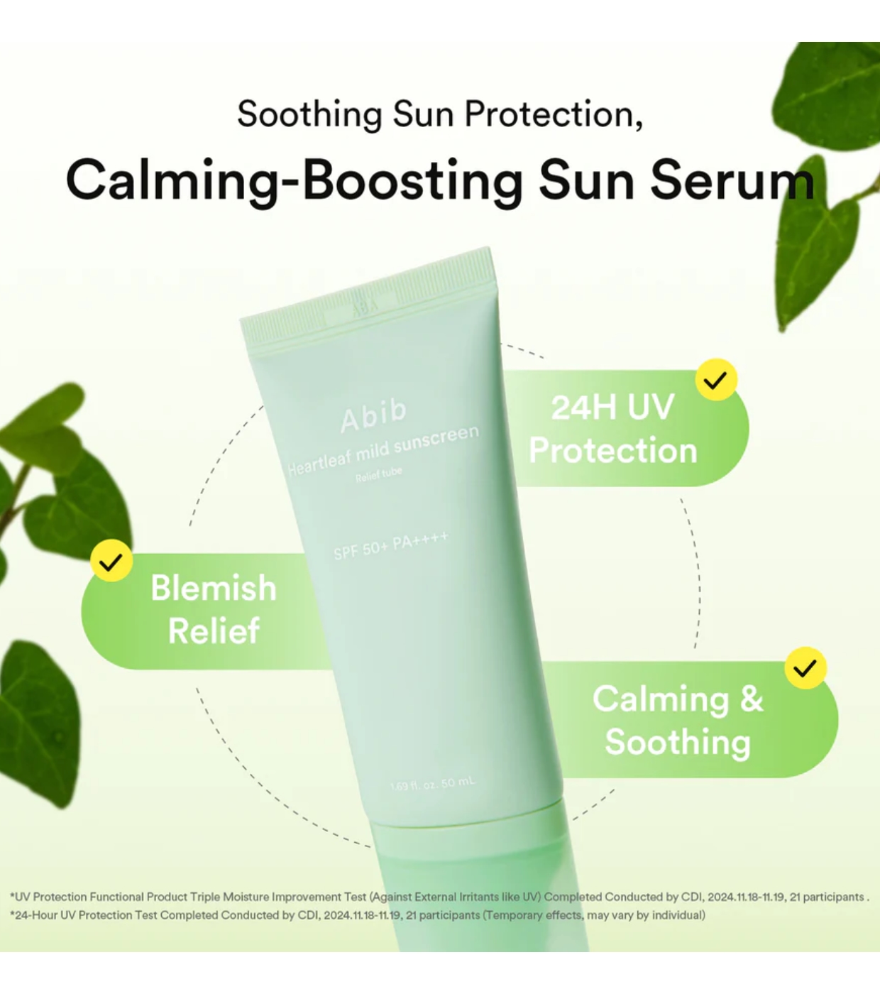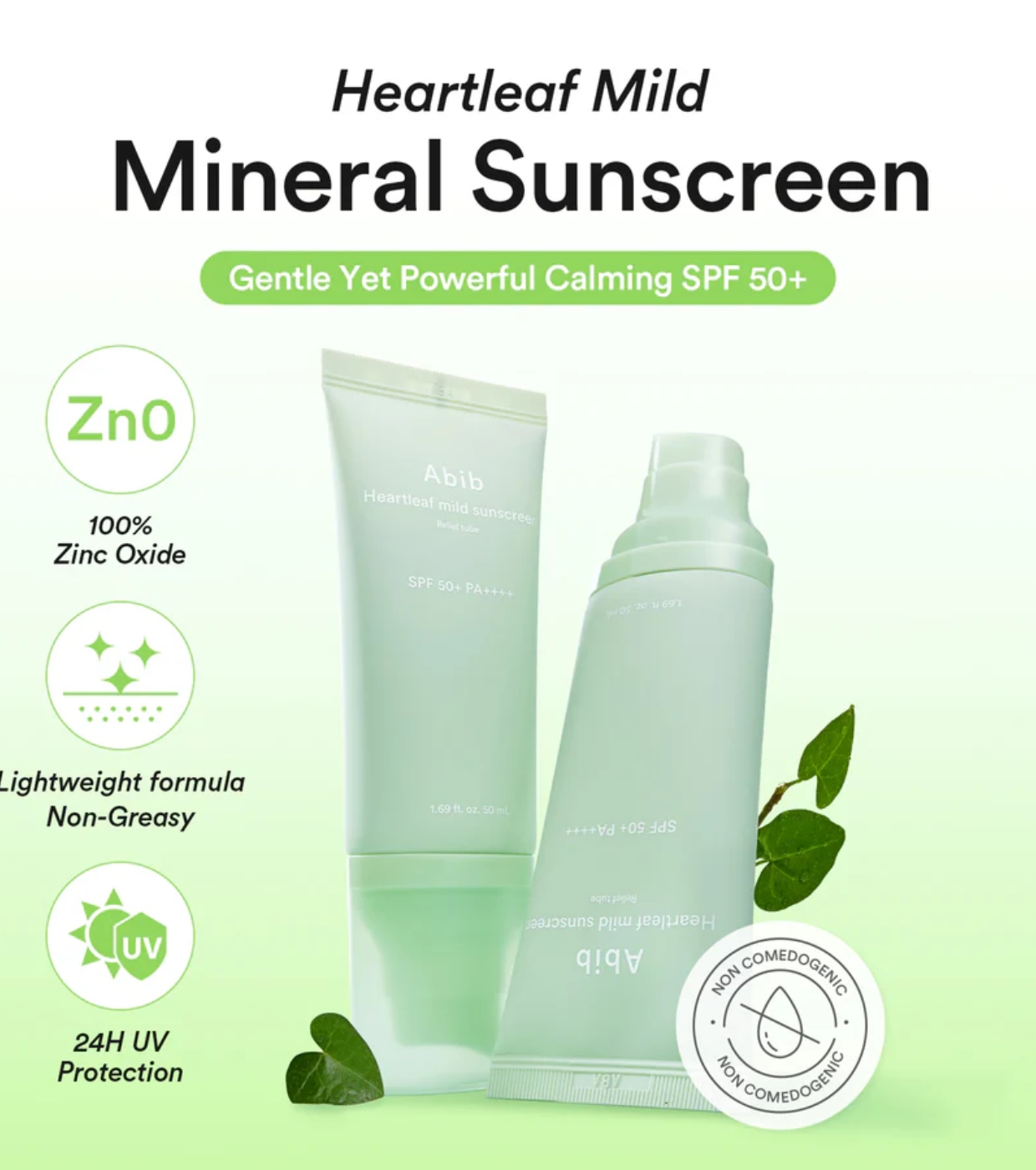 Heartleaf Mild SPF50+ PA++++ Heartleaf Mild SPF50+ PA++++ écran solaire minéral à large spectre spécialement formulé pour les peaux sensibles ou sujettes aux rougeurs.