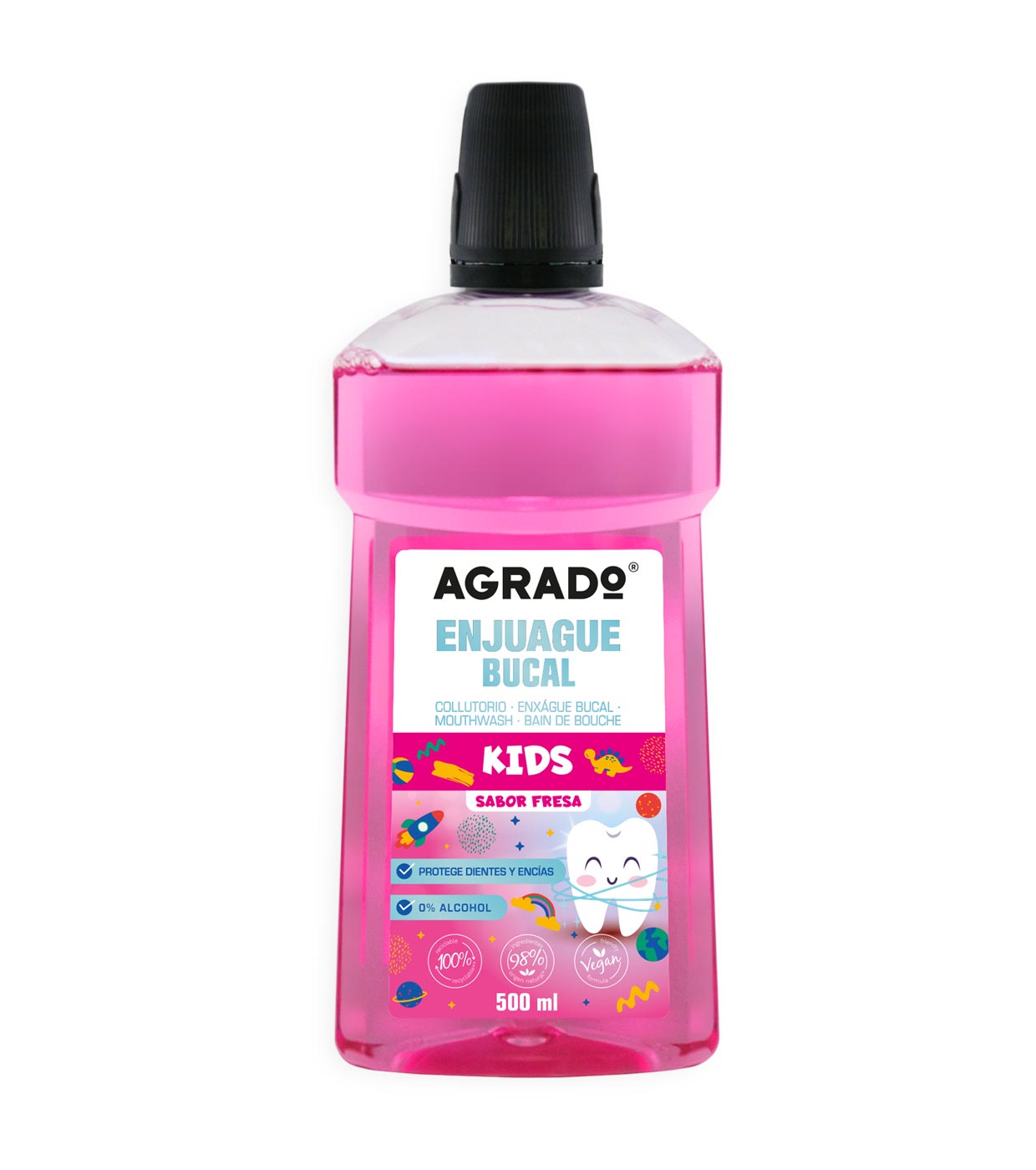 Le rince-bouche pour enfants de Agrado Cosmetic est idéal pour le soin quotidien de la bouche des plus petits de la maison.