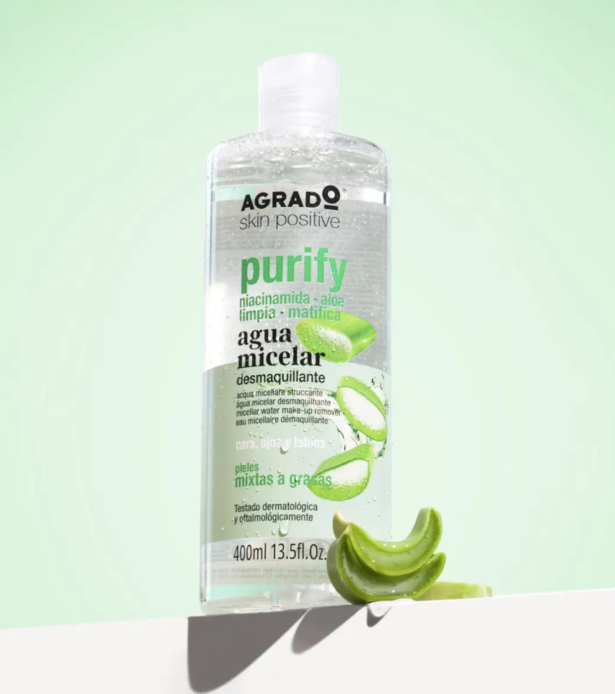 Nettoyez et démaquillez-vous en une seule étape avec l'Eau Micellaire Nettoyante Purifiante Purify .