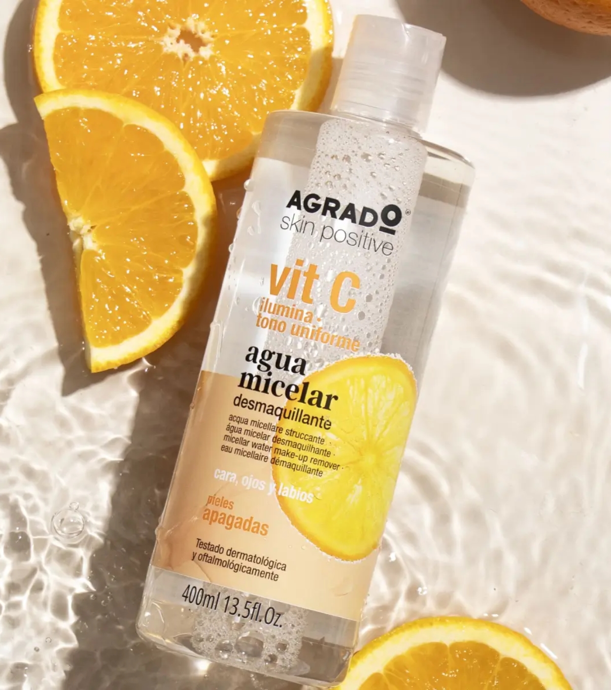 Nettoyez, démaquillez et prenez soin de votre peau avec Agrado. Eau Micellaire Nettoyante à la Vitamine C.