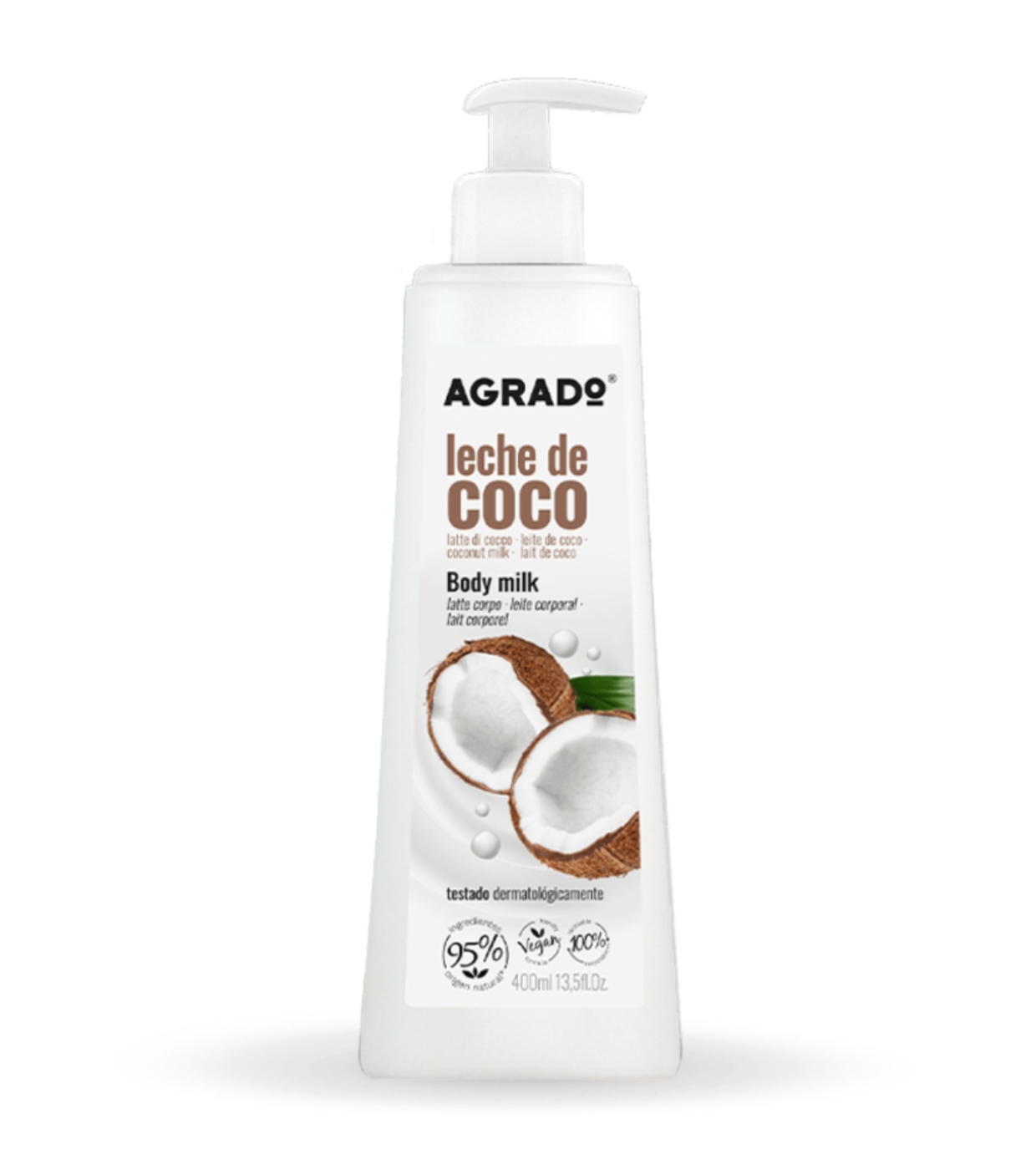Lait corporel Agrado Cosmetics au doux parfum de noix de coco.