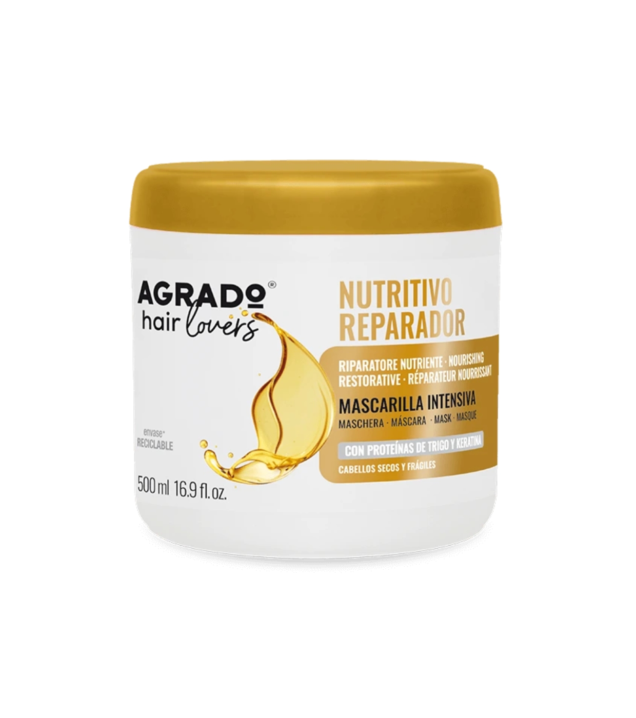 Le masque capillaire nourrissant pour cheveux secs et cassants par Agrado Cosmetic rencontre trois fonctions en un seul produit : adoucit, nourrit et répare.
