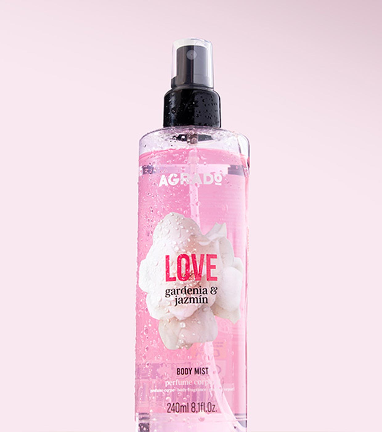 Parfum corporel Love Gardénia et jasmin par Agrado.