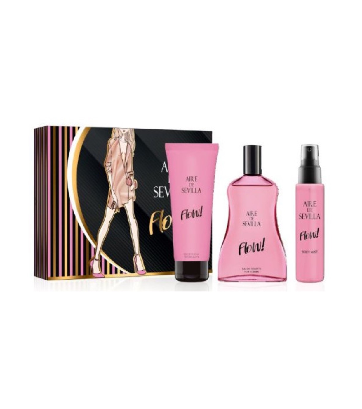 Aire de Sevilla Set Eau de toilette pour femme + brume corporelle + gel douche Flow est un parfum frais et floral, où l'élégance devient parfum.