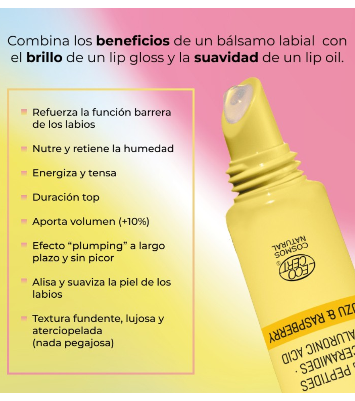 Il contient un mélange d'ingrédients actifs enrichis de peptides, de céramides, d'acide hyaluronique et de pigments holographiques roses qui créent un effet juteux et un éclat 3D, amplifiant le volume et améliorant le ton naturel des lèvres.