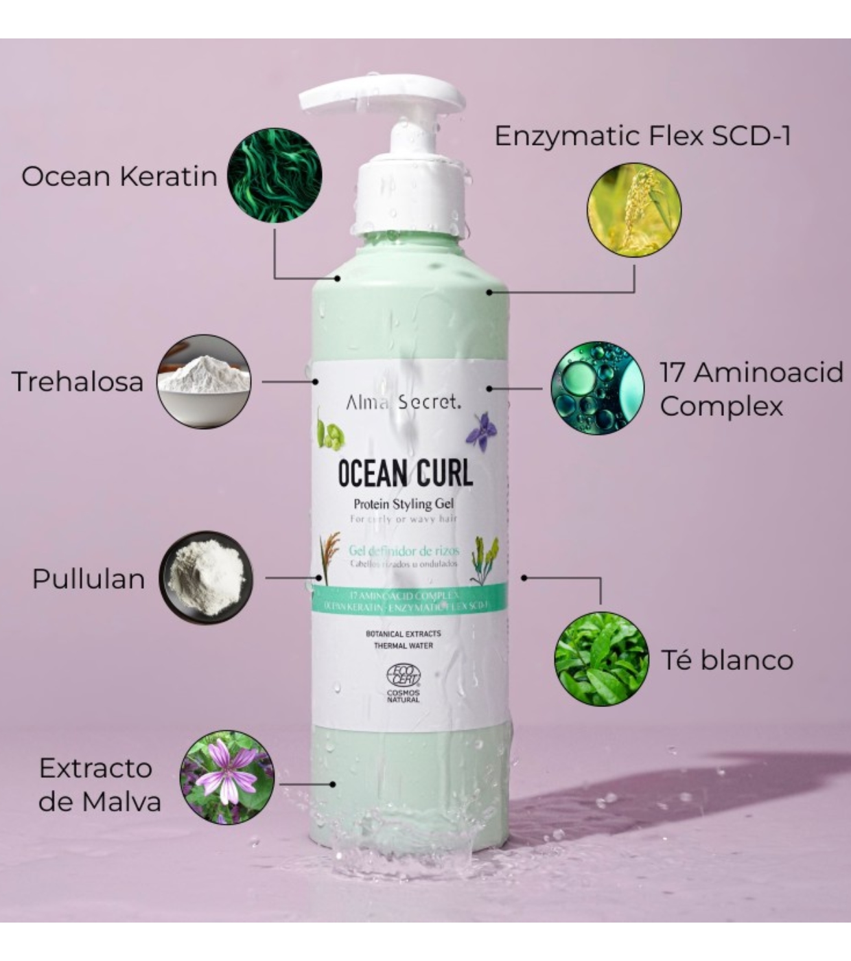 Ocean Curl de Alma Secret est un gel activateur et définissant les boucles de nouvelle génération qui répare, hydrate et façonne les cheveux bouclés et ondulés, offrant élasticité, volume et mouvement naturel sans raideur ni alourdissement.