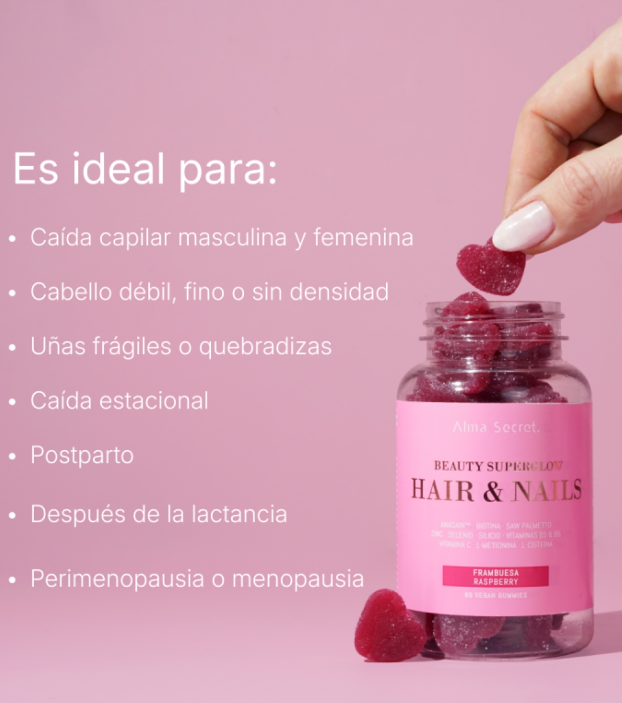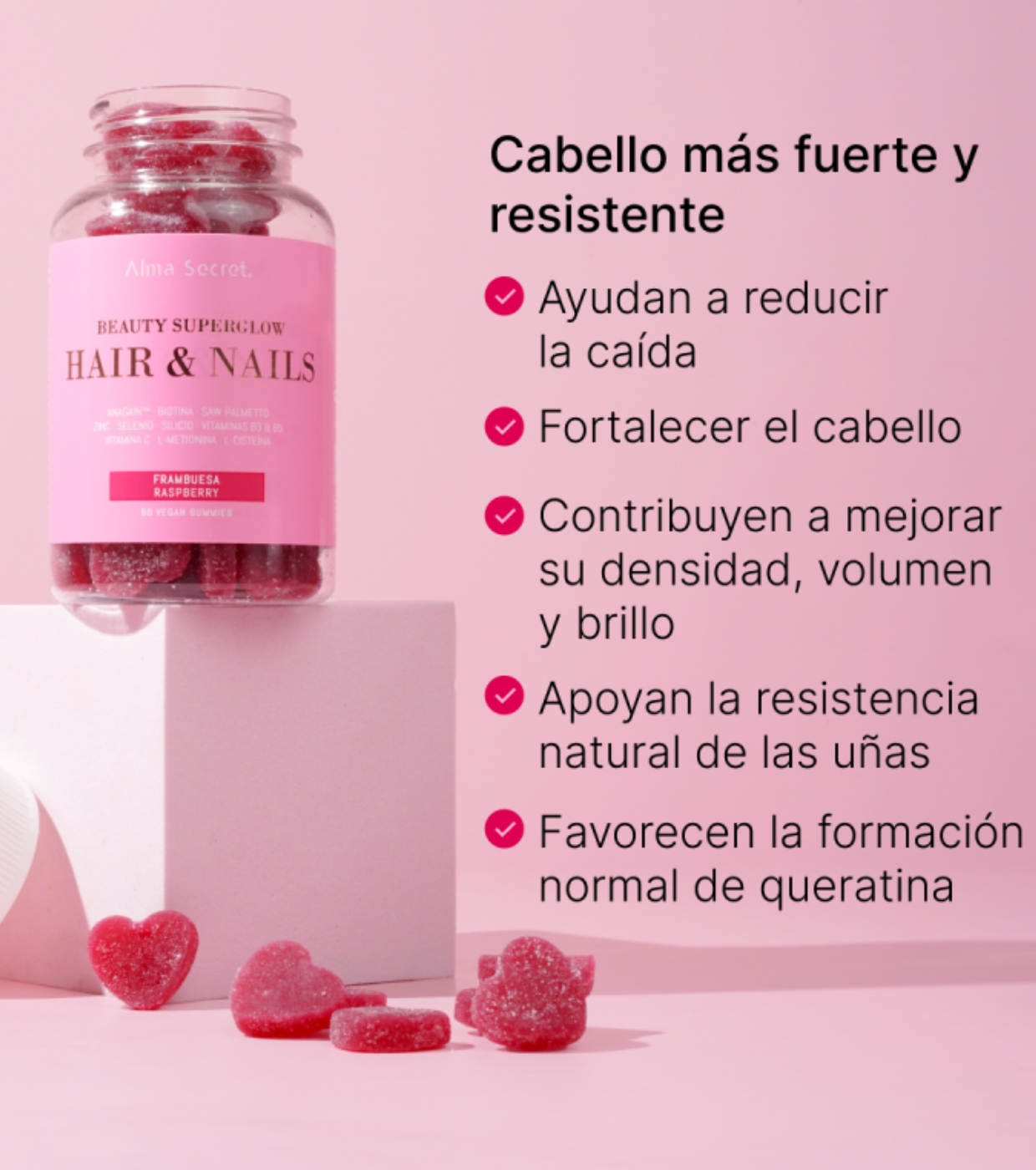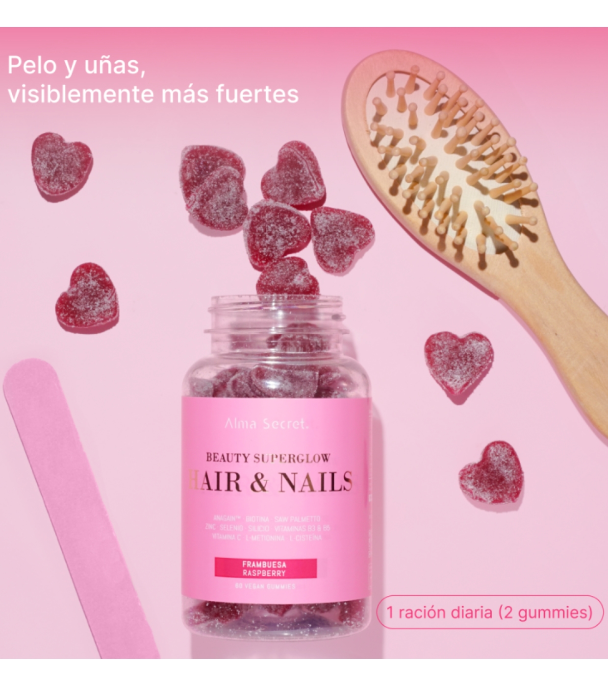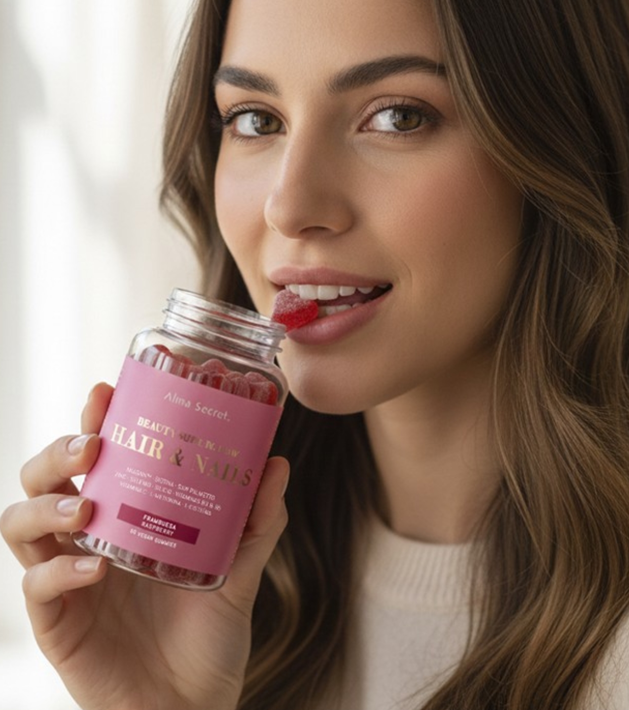 Obtenez des cheveux plus forts et des ongles plus résistants grâce à ces gommes à mâcher Alma Secret formulées avec 11 ingrédients actifs naturels soigneusement sélectionnés pour agir en synergie.