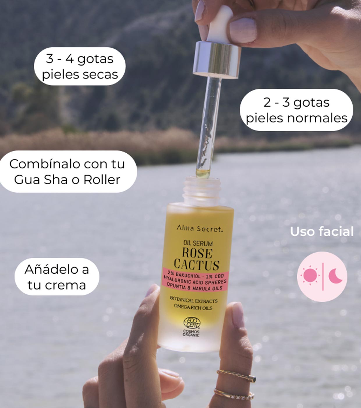 Appliquez Rose Cactus deux fois par jour dans votre routine, toujours en dernière étape et sur la peau légèrement humide de la crème ou du sérum précédent. De cette façon, vous scellerez les ingrédients hydratants pour préserver la nutrition de la peau.