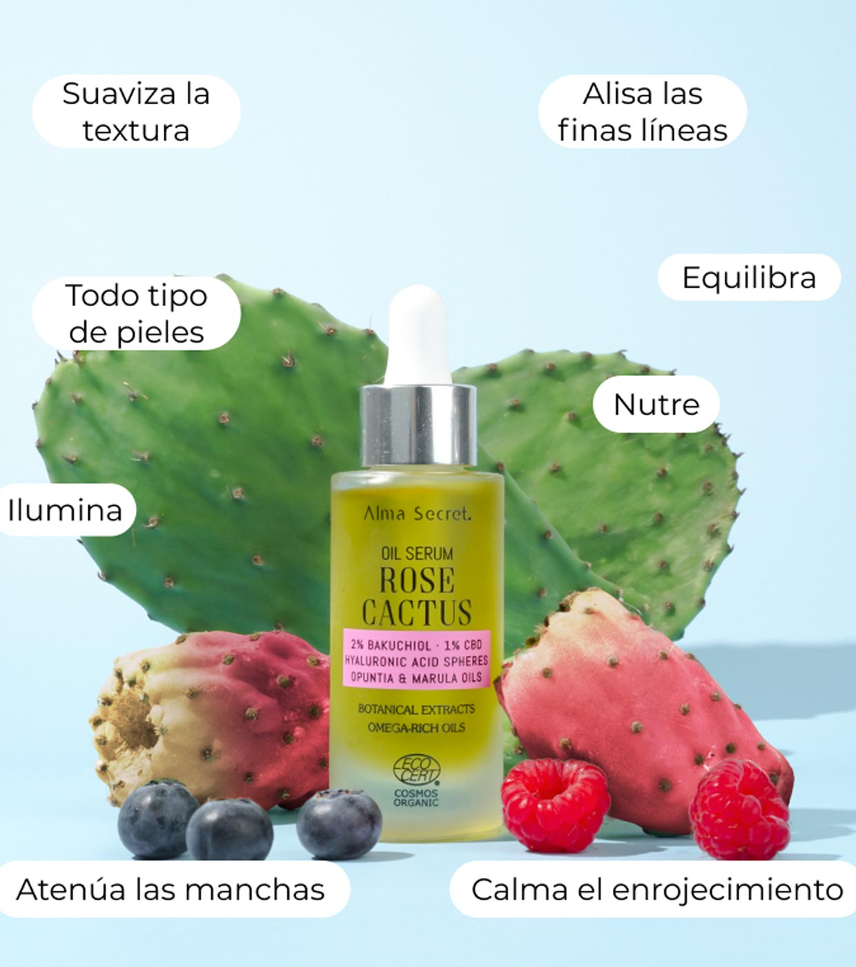 Rose Cactus Oil d'Alma Secret est une huile pour le visage de nouvelle génération, adaptée à tous les types de peau, qui agit en activant le renouvellement cellulaire, en reconstruisant et en renforçant la barrière cutanée, en améliorant sa résistance aux déclencheurs de stress quotidiens, en revitalisant les peaux stressées. et en augmentant sa luminosité.