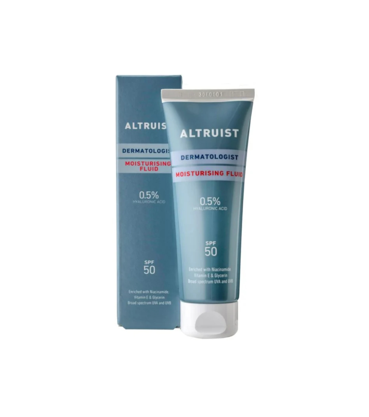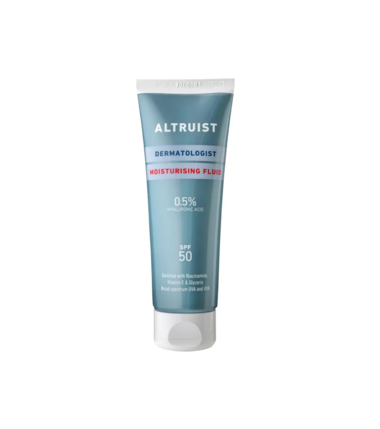 Le fluide hydratant à 0,5% d'acide hyaluronique et SPF50 Moisturising conçu pour hydrater intensément la peau tout en la protégeant des effets nocifs du soleil.