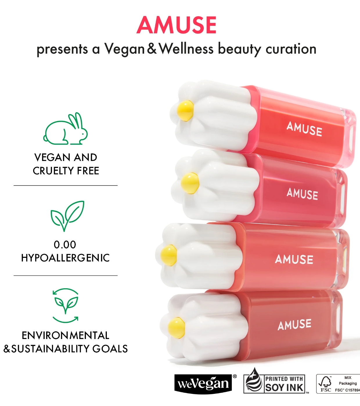 Dew Tint de AMUSE est une teinte à lèvres végétalienne légère à base d'eau qui offre un fini juteux, brillant et naturel.