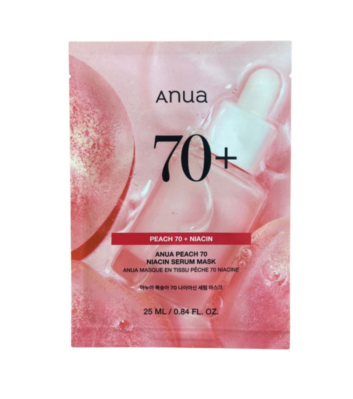 Revitalisez et illuminez votre peau avec Peach 70 Niacin Serum Peach 70 Niacin Serum , un masque en feuille coréen qui combine 70 % d'extrait de pêche avec de la niacinamide (vitamine B3), connue pour ses propriétés éclaircissantes et améliorant la peau.