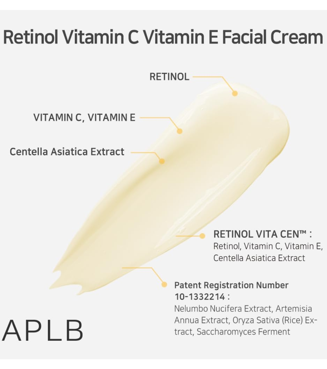 Aqua(Water), Centella Asiatica Leaf Water, Glycerin, Cetyl Ethylhexanoate, Butylene Glycol, Polyglyceryl-3 Methylglucose Distearate, 1, 2-Hexanediol, Stearic Acid, Silica, Glyceryl Stearate, Sodium Polyacryloyldimethyl Taurate, Propanediol, Beeswax, Hydroxyacetophenone, Butyrospermum Parkii (Shea) Butter, Macadamia Integrifolia Seed Oil, Hydrogenated Polydecene, Betaine, Trehalose, Citric Acid, Gardenia Florida Fruit Extract, Trideceth-10, Disodium EDTA, Sodium Citrate, Dipotassium Glycyrrhizate, Dextrin, Hydroxypropyl Cyclodextrin, Tocopheryl Acetate, Ascorbic Acid, Dipropylene Glycol, Squalane, Retinol, Asiaticoside, Madecassic Acid, Asiatic Acid, Sodium Hyaluronate, Melaleuca Alternifolia (Tea Tree) Leaf Extract, Hippophae Rhamnoides Fruit Extract, Hydrolyzed Collagen, Beta-Glucan, Caprylyl Glycol, Nelumbium Speciosum Flower Extract, Artemisia Annua Extract, Oryza Sativa (Rice) Extract, Saccharomyces Ferment, Solanum Melongena (Eggplant) Fruit Extract