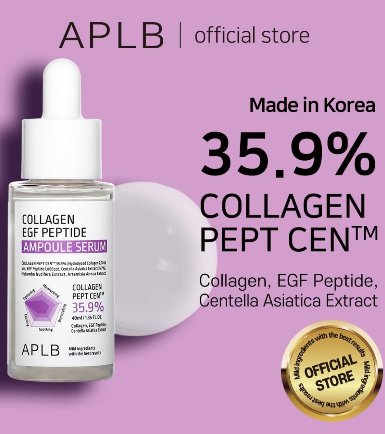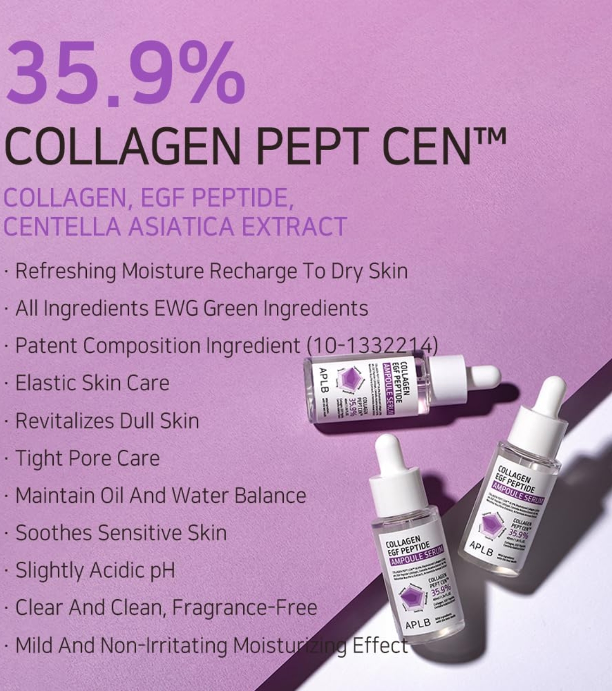 Sa formule avancée contient 35,9 % de Collagen Pept CEN™, un complexe de collagène de haute pureté qui aide à renforcer la structure de la peau, à lisser la texture et à donner une apparence plus ferme et plus uniforme.