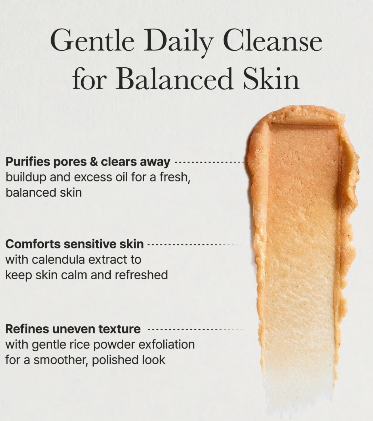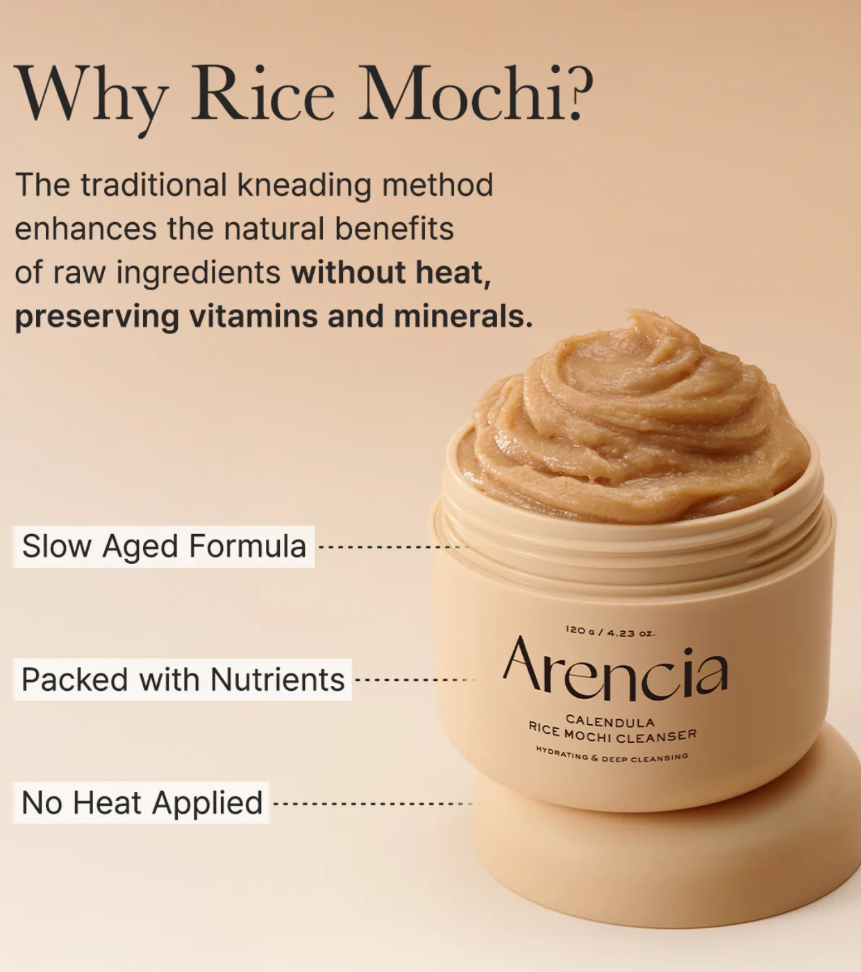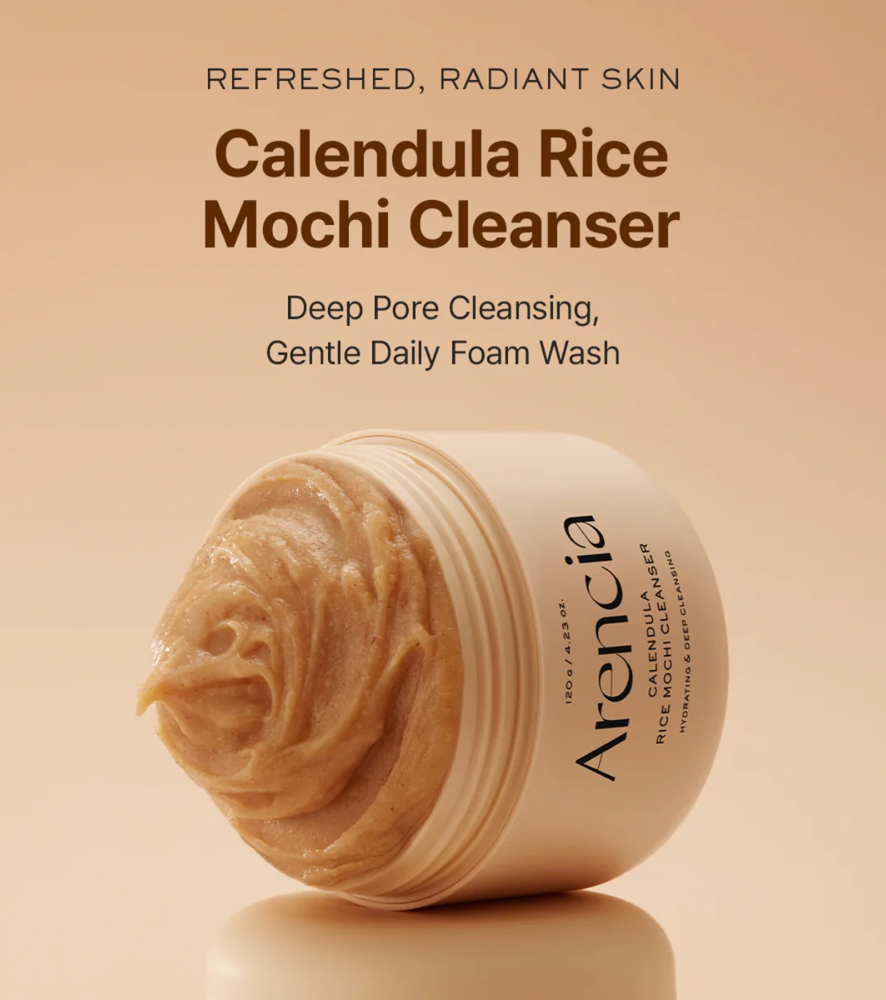 Le nettoyant Calendula Rice Mochi d'Arencia est un nettoyant visage moussant quotidien formulé pour apaiser, réconforter et protéger les peaux sensibles, sèches ou irritées.