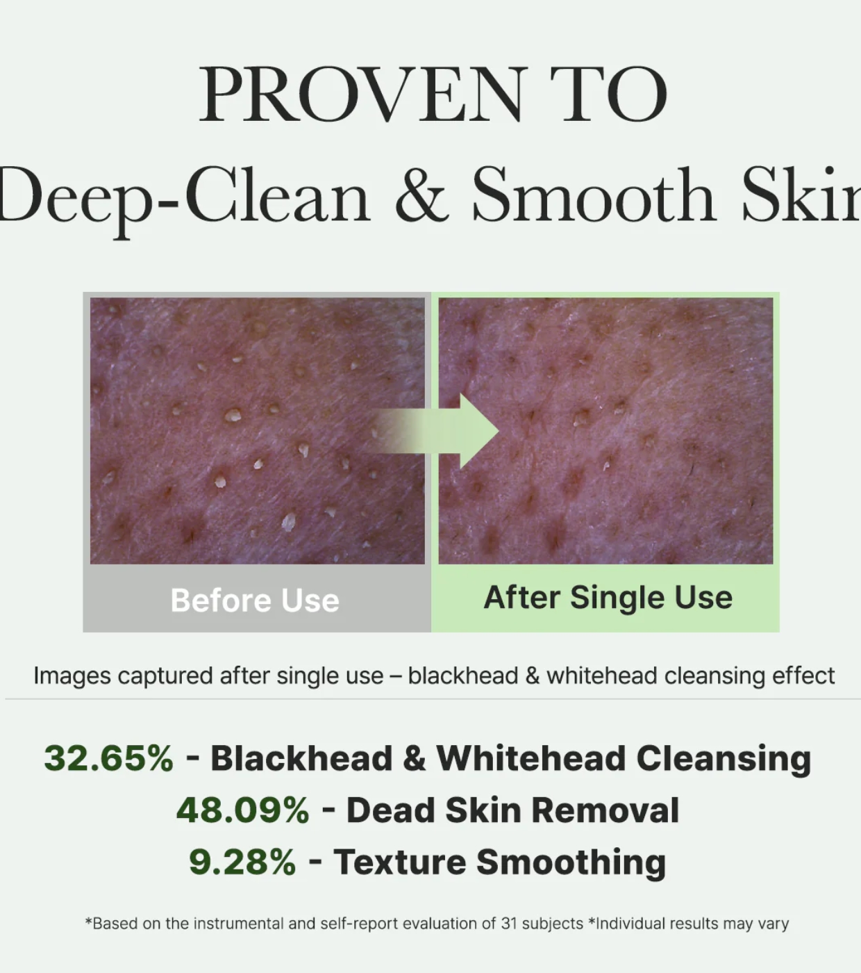 Il est cliniquement prouvé que ce produit améliore 7 aspects visibles de la peau : il aide à désobstruer les pores, à lisser le grain de peau, à réduire l’apparence des points noirs et à améliorer l’absorption des traitements ultérieurs.