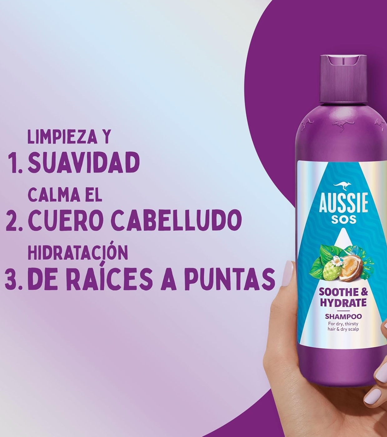 Vos cheveux et votre cuir chevelu secs réclament de l'aide ? Le shampooing Aussie SOS Soothe & Hydrate est la solution qu'il vous faut.