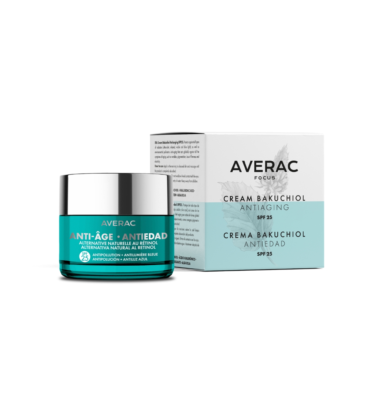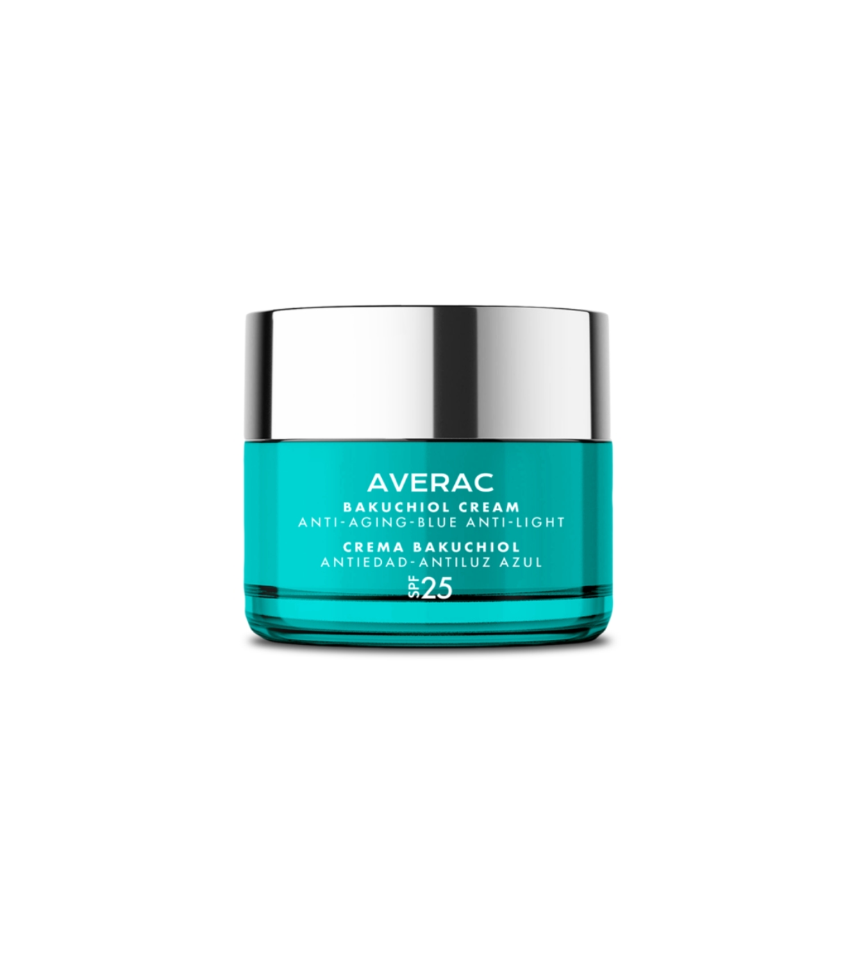 Averac Cosmetics La crème visage anti-âge au bakuchiol SPF25 associe le pouvoir du bakuchiol, l'alternative végétalienne au rétinol, à une protection solaire à large spectre pour offrir un soin quotidien qui hydrate, raffermit et prévient le vieillissement prématuré.