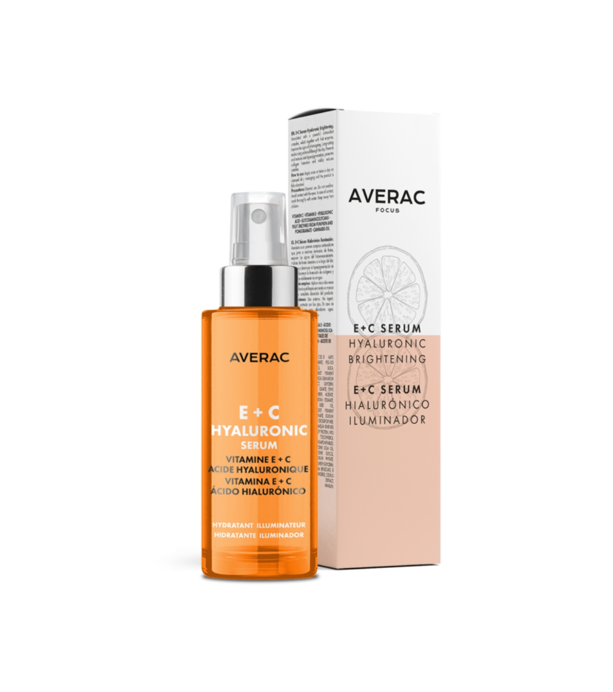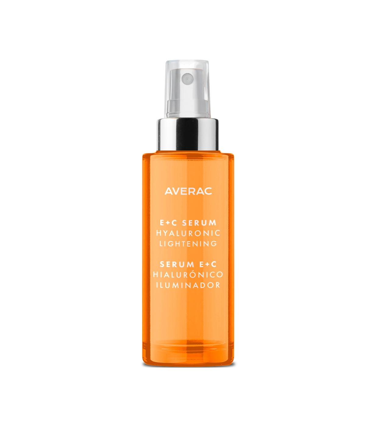 Le sérum illuminateur à l'acide hyaluronique E+C d'Averac offre une action anti-âge globale qui prévient et réduit l'hyperpigmentation, favorise la formation de collagène et améliore l'élasticité et la fermeté du visage.