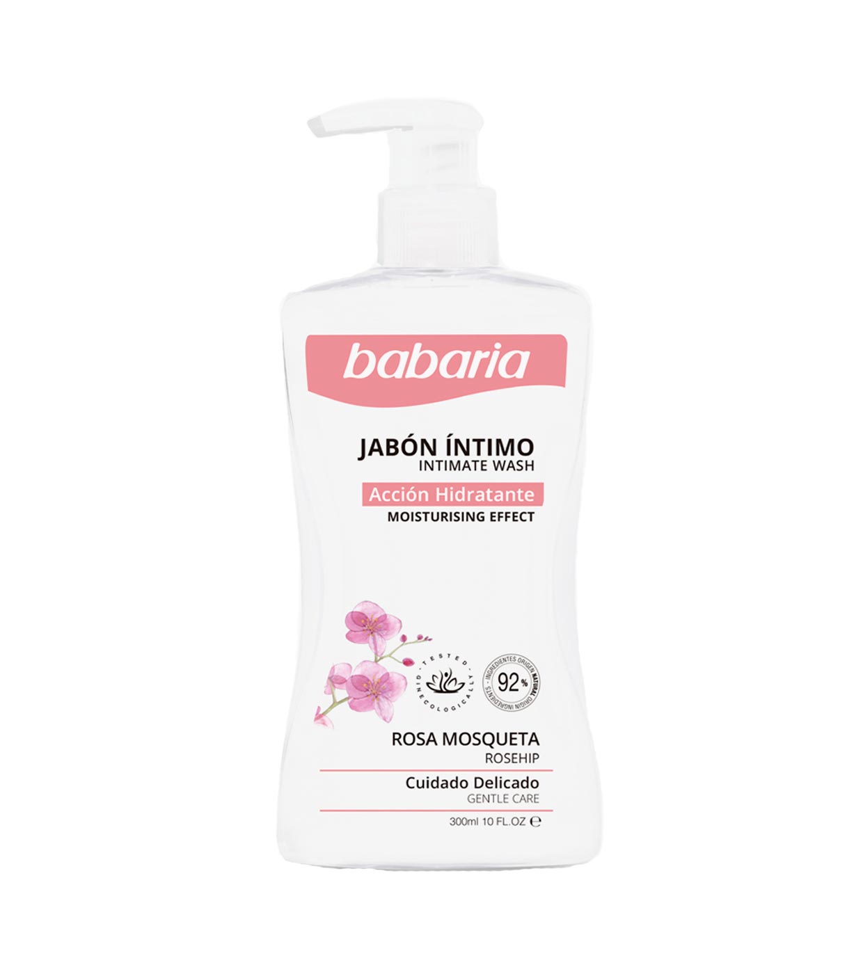 Savon intime à action hydratante, à la rose musquée et à l'acide lactique.