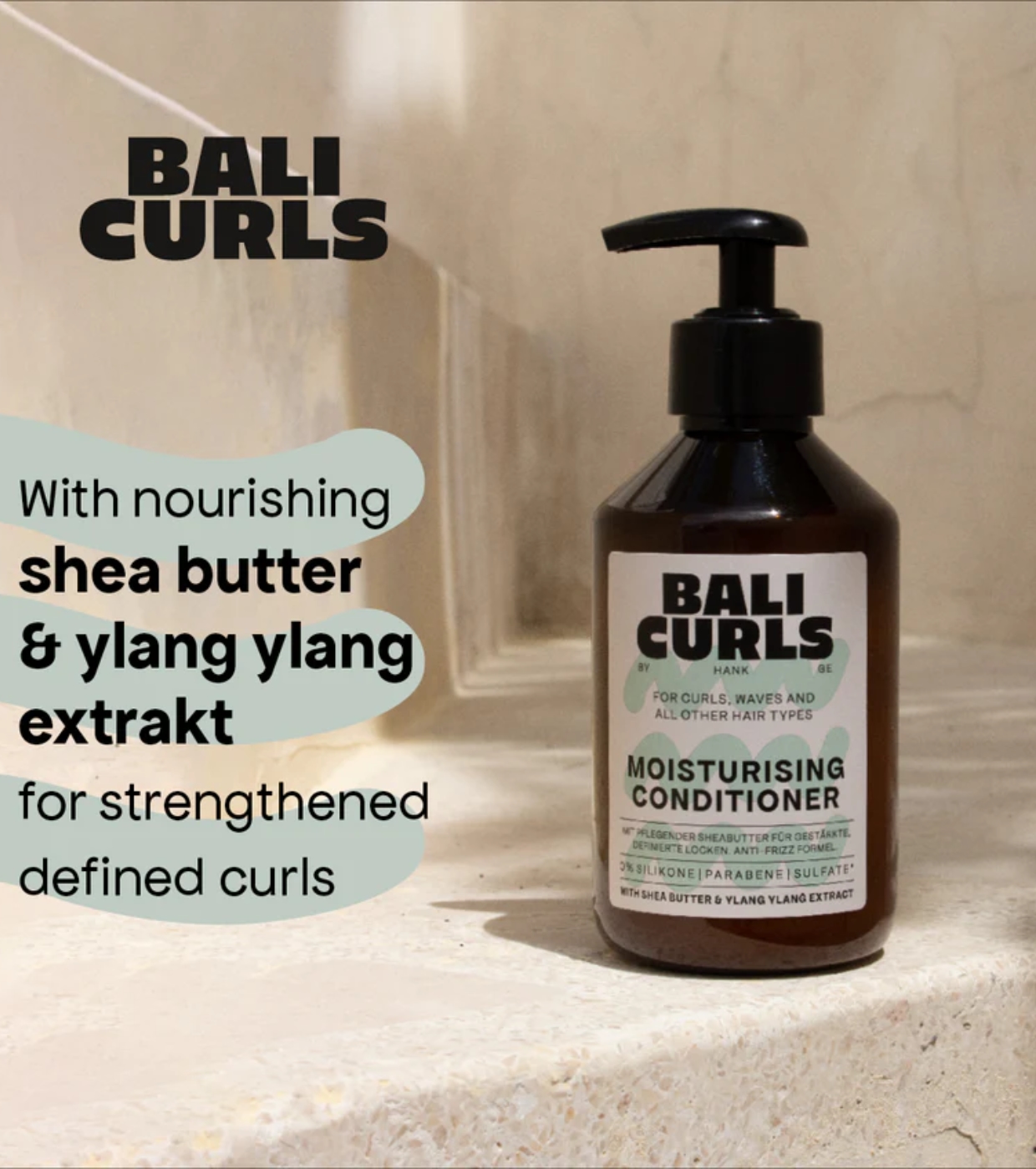 L'après-shampoing anti-frisottis et définissant les boucles de Bali Curls possède une formule riche qui non seulement hydrate intensément les boucles, mais les renforce et les régénère également.