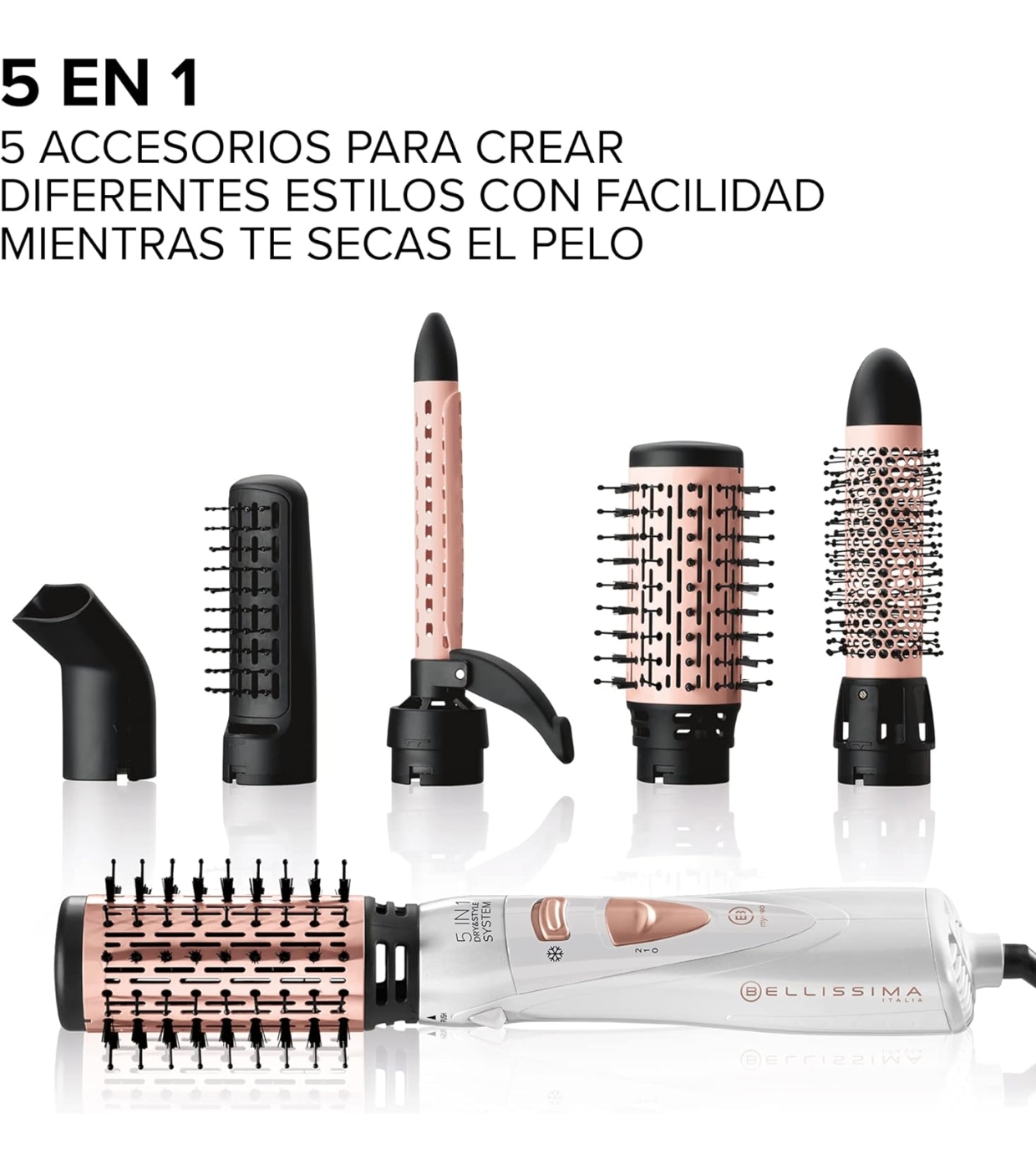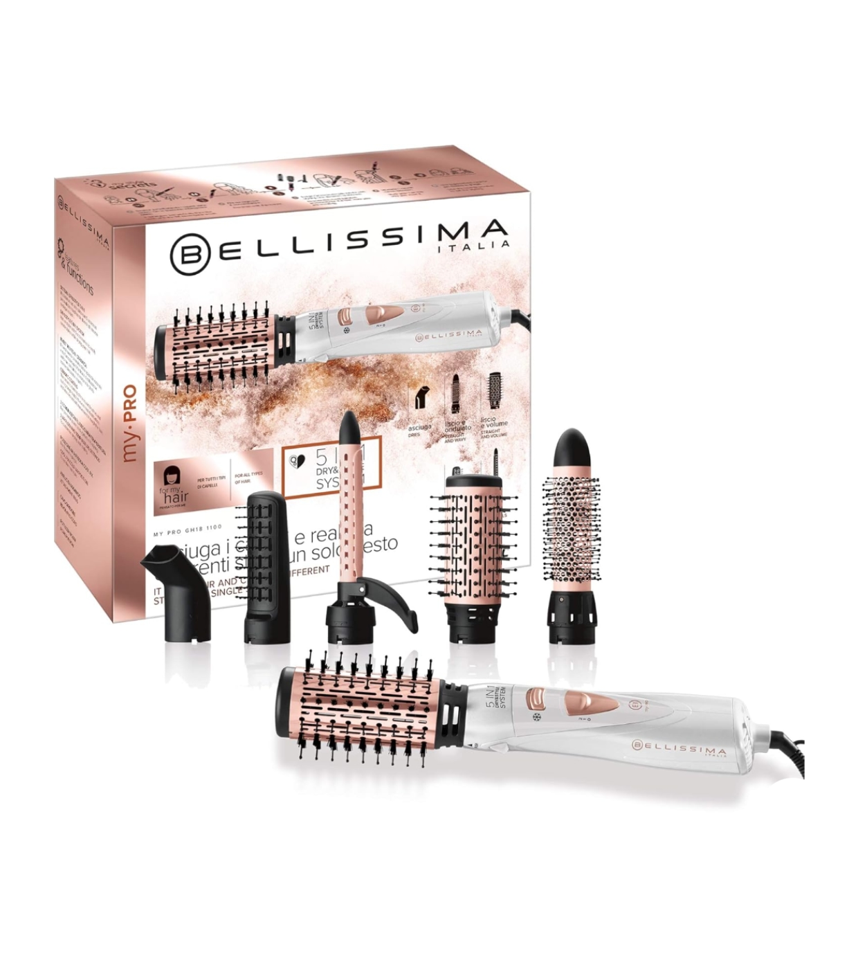 Bellissima Dry&Style System GH18 1100 est la brosse à air chaud 5 en 1 qui sèche et coiffe en une seule étape, vous permettant de créer plusieurs styles : cheveux lisses et volumineux, ondulations douces, pointes profilées ou boucles définies.