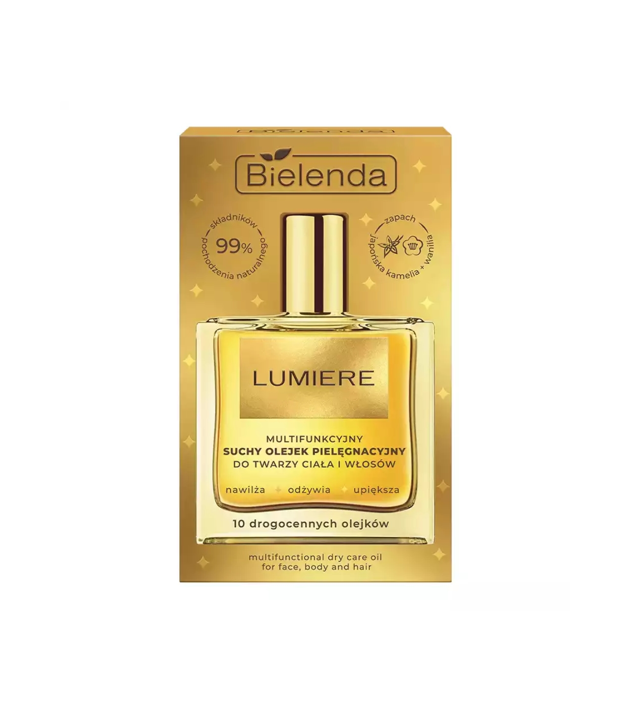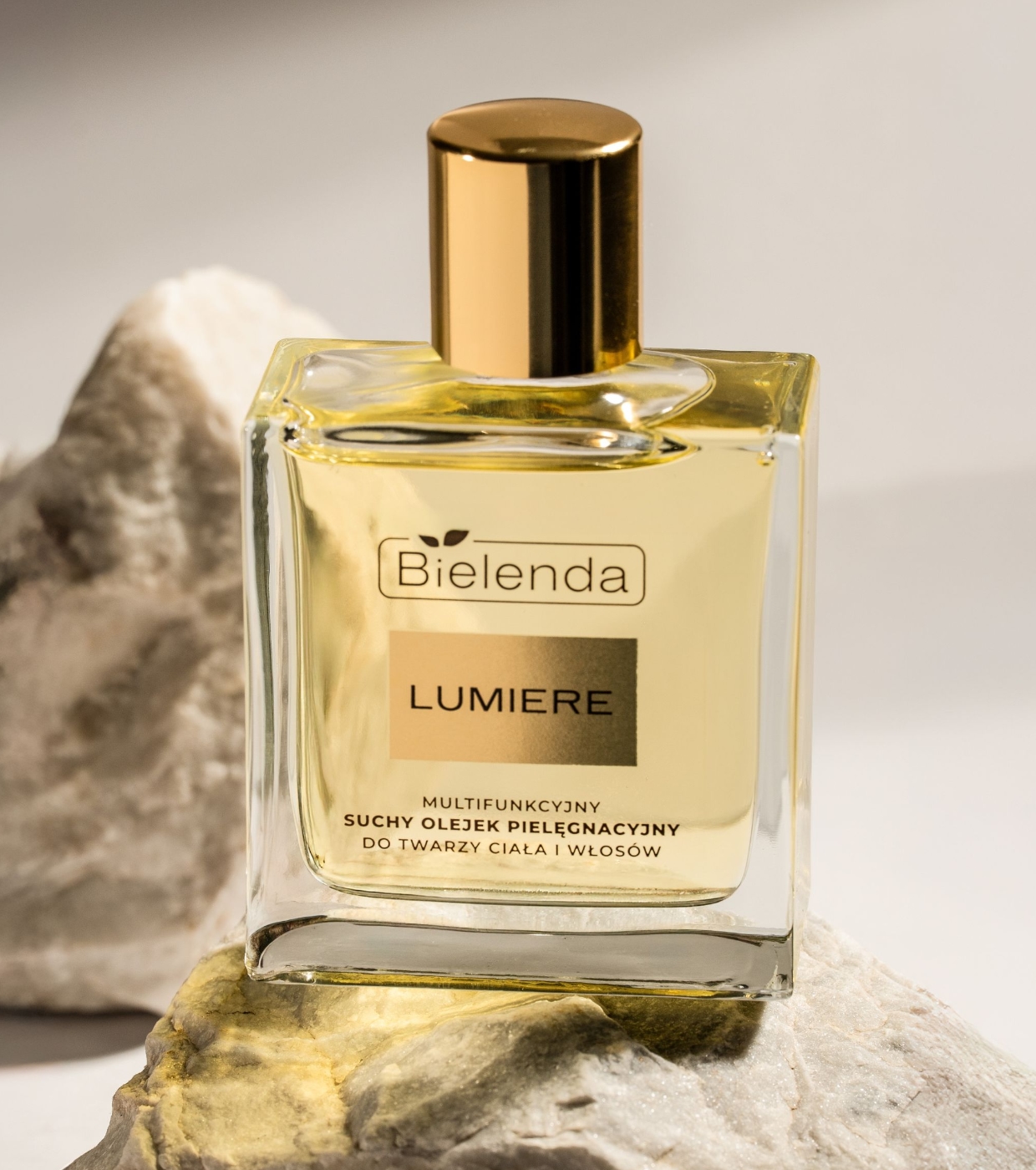 L' huile sèche multifonctionnelle Lumière de Bielenda est une formule de luxe conçue pour prendre soin de la peau du visage, du corps et des cheveux en une seule étape.