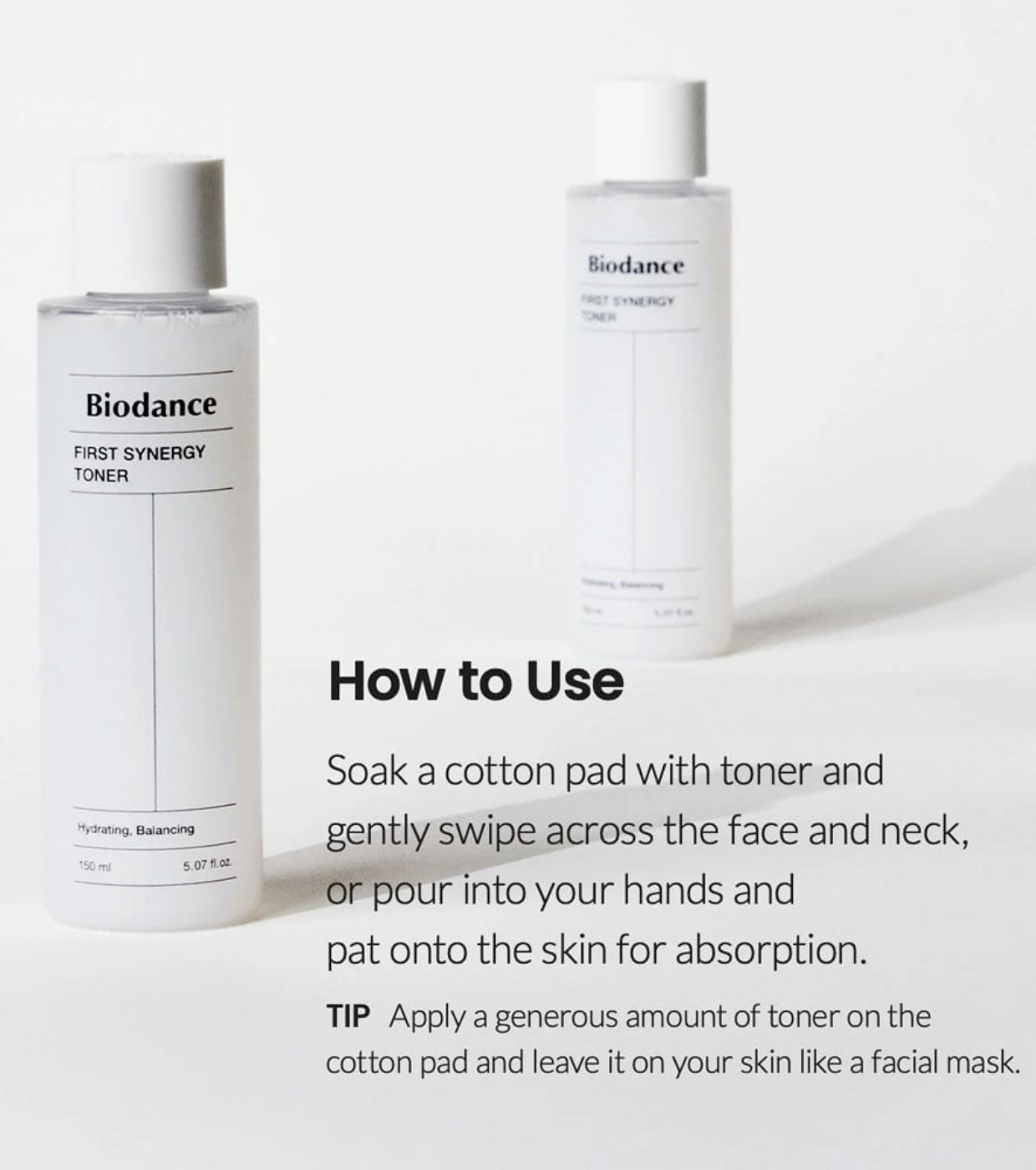 Obtenez une peau confortable, équilibrée et visiblement plus saine avec le First Synergy Toner de Biodance , un indispensable de votre routine faciale qui transforme l'étape de tonification en un véritable traitement.