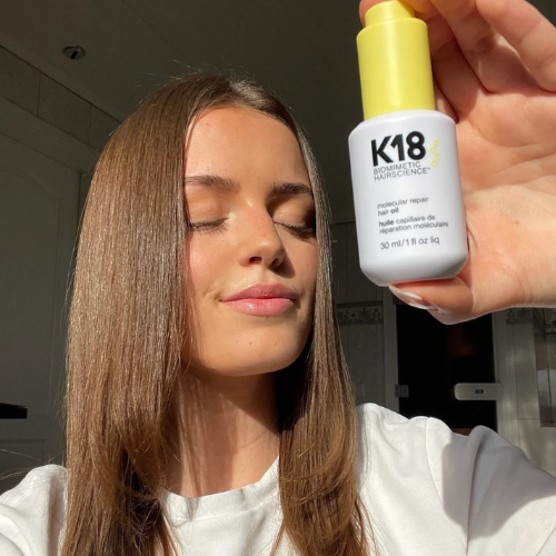 Huile capillaire de réparation moléculaire K18 : Agit sur les cheveux pour les renforcer, réparer les dommages et réduire les frisottis à deux niveaux de la fibre capillaire et améliorer la brillance.