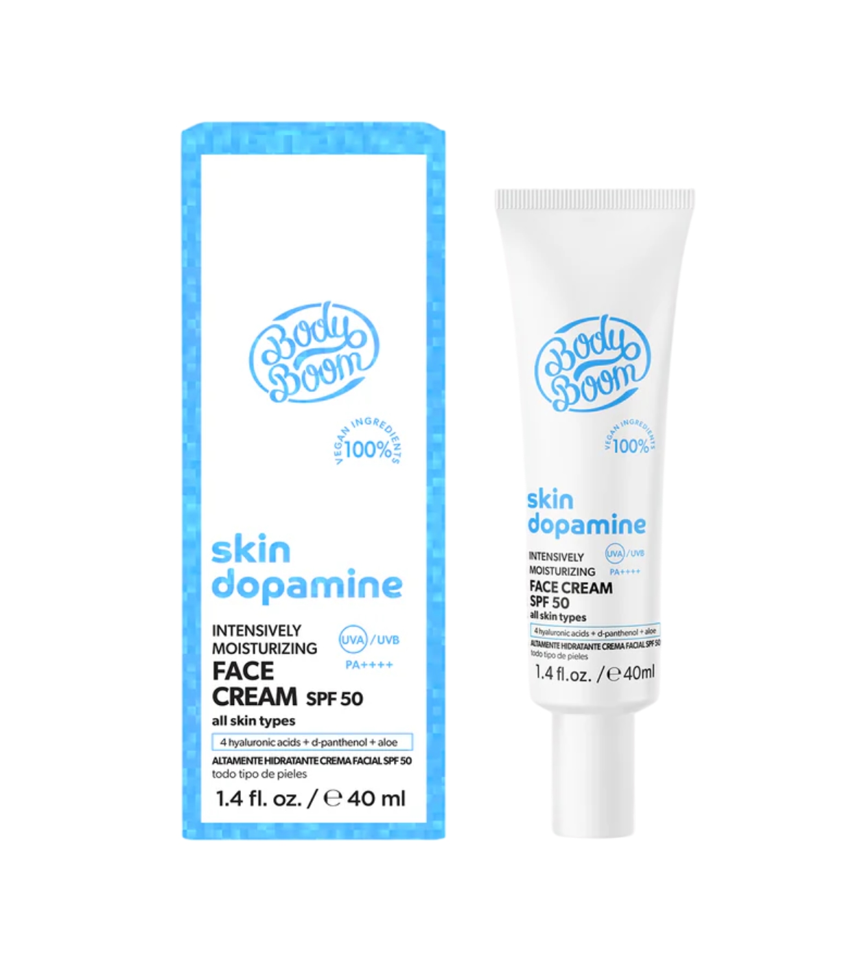 Simplifiez votre routine quotidienne avec la Crème Visage SPF50 PA ++++ Hyaluronic acid + Pantenol + Aloe Bodyboom , la crème multitâche qui hydrate en profondeur et protège votre peau des méfaits du soleil en une seule étape.