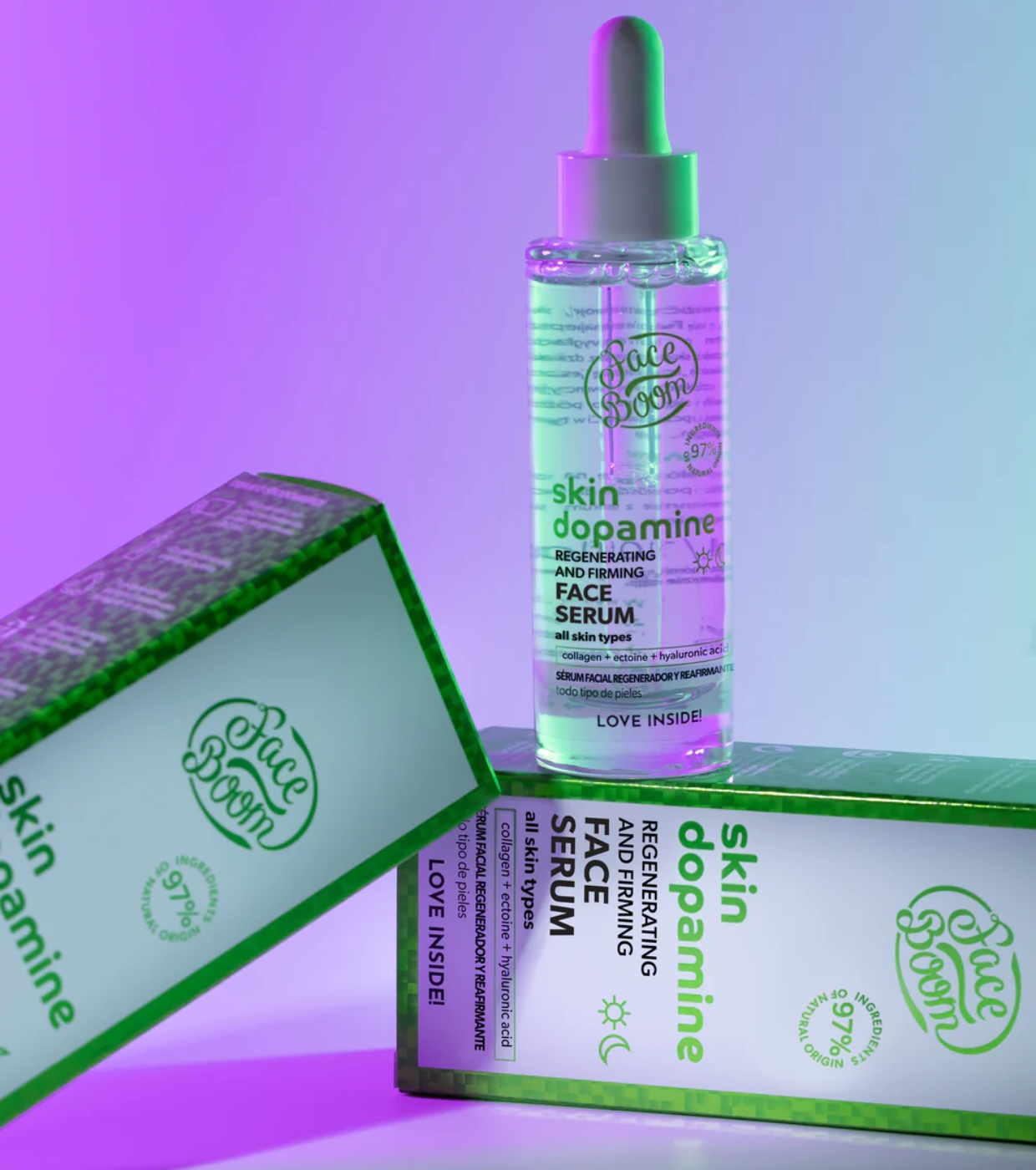 Boostez votre routine de soins du visage avec le Sérum Raffermissant Régénérant colageno + ectoina + hyaluronic acid de Bodyboom , une étape essentielle pour nourrir et renforcer votre peau.