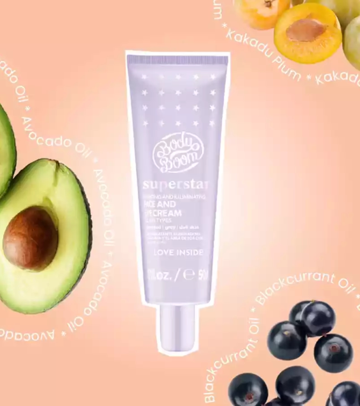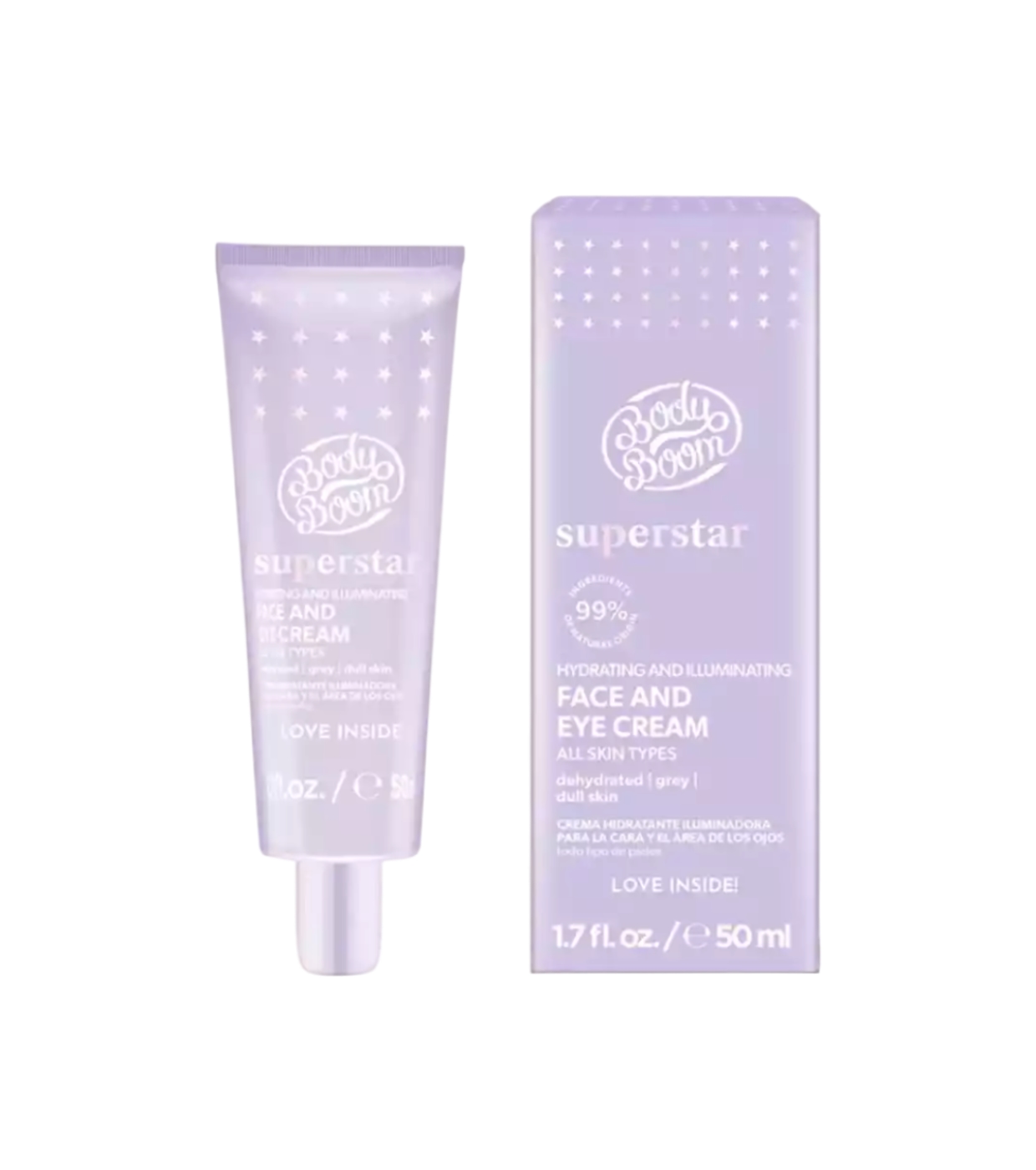 Dynamisez votre peau avec la Superstar Face & Eye Cream de BodyBoom , une crème 2 en 1 qui hydrate, illumine et apporte de la fraîcheur au visage et au contour des yeux.