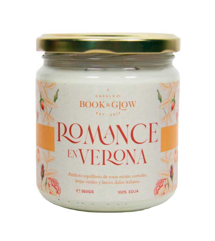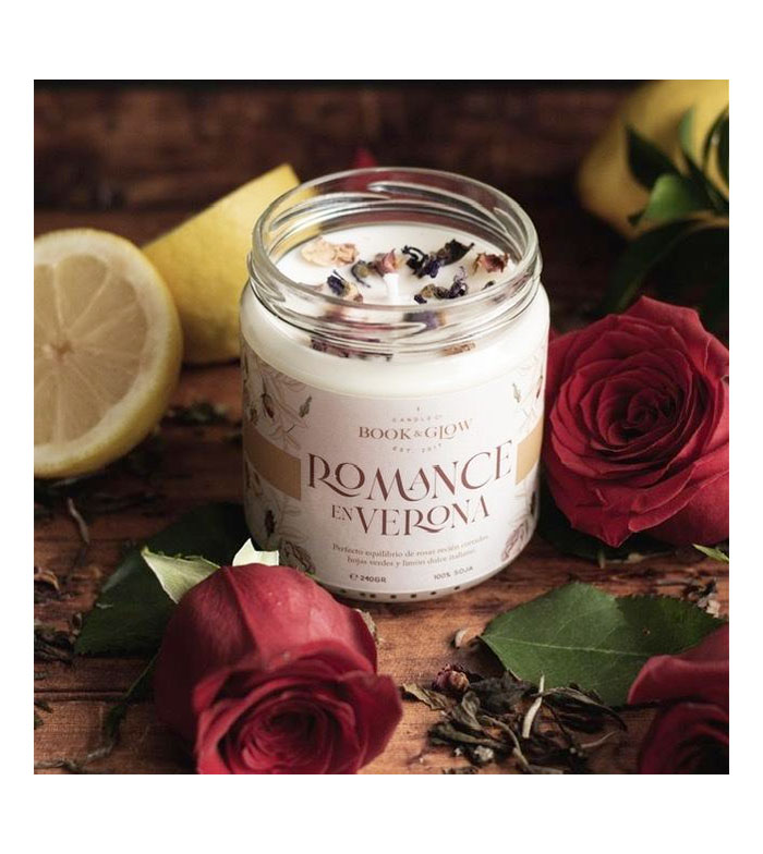 Bougie de soja de la collection Extraordinary Worlds de Book and Glow. Romance à Vérone.
