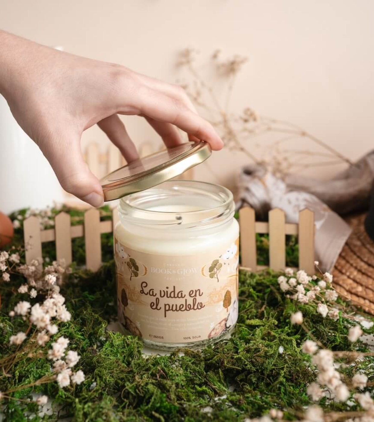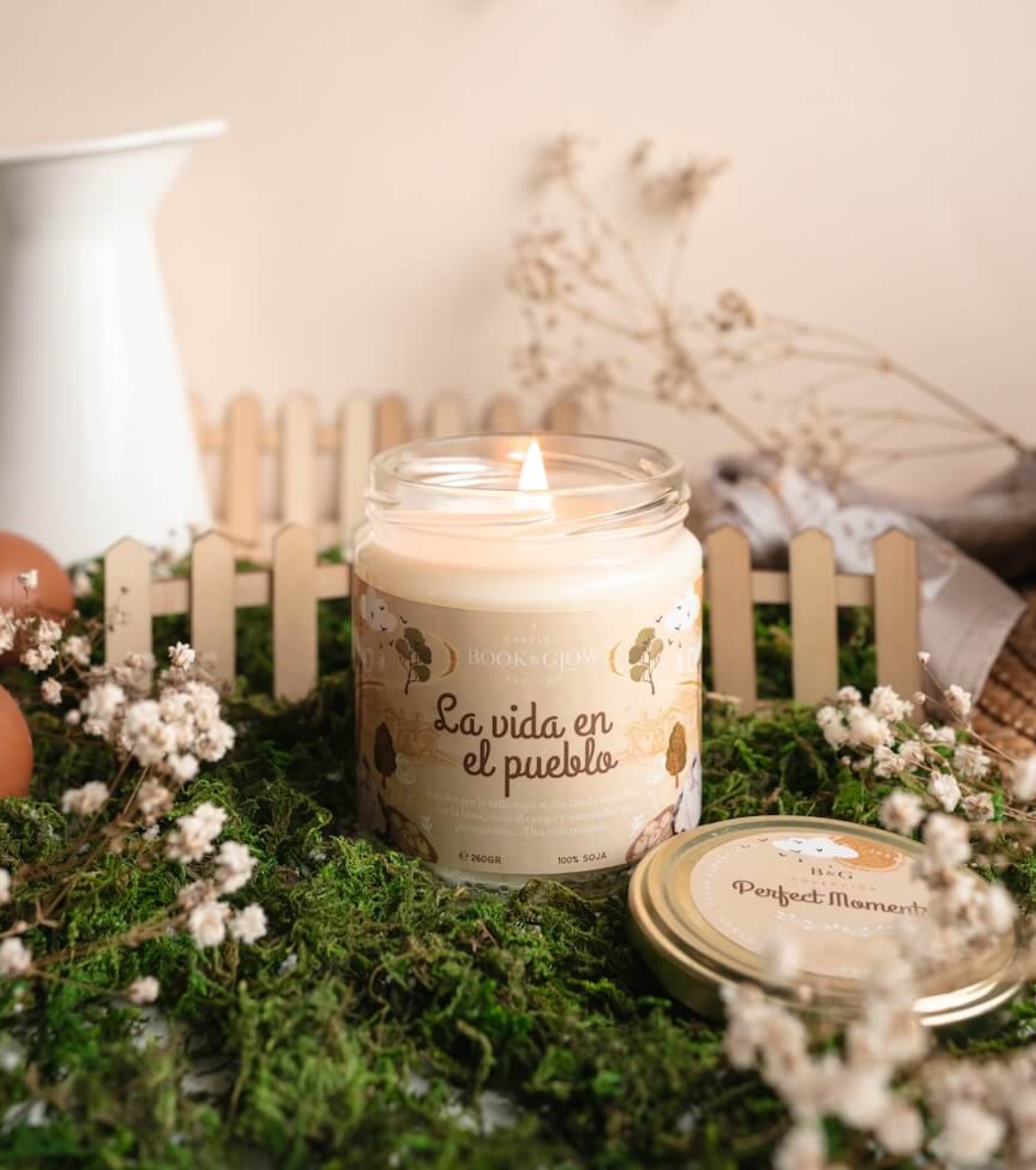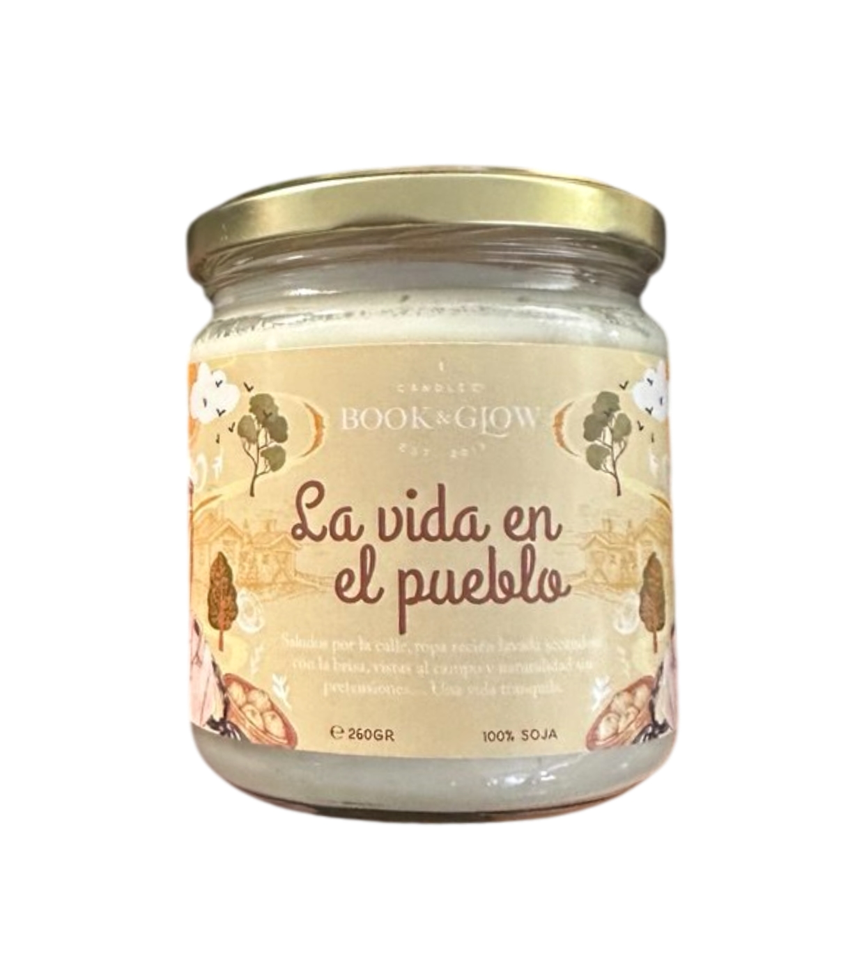 Laissez-vous envelopper par l'essence d'un été lent et authentique avec la bougie soja Book and Glow Village Life .