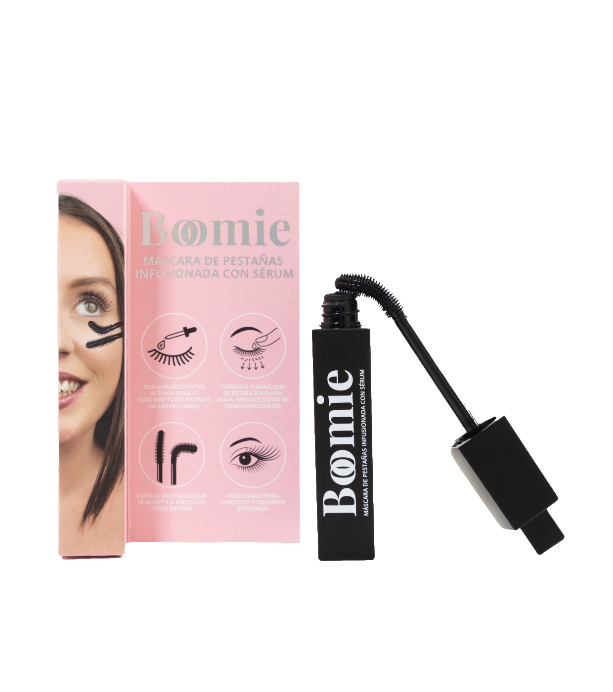Boomie Le Mascara avec Sérum est bien plus qu'un mascara : il associe un maquillage professionnel à un soin fortifiant pour transformer vos cils jour après jour.