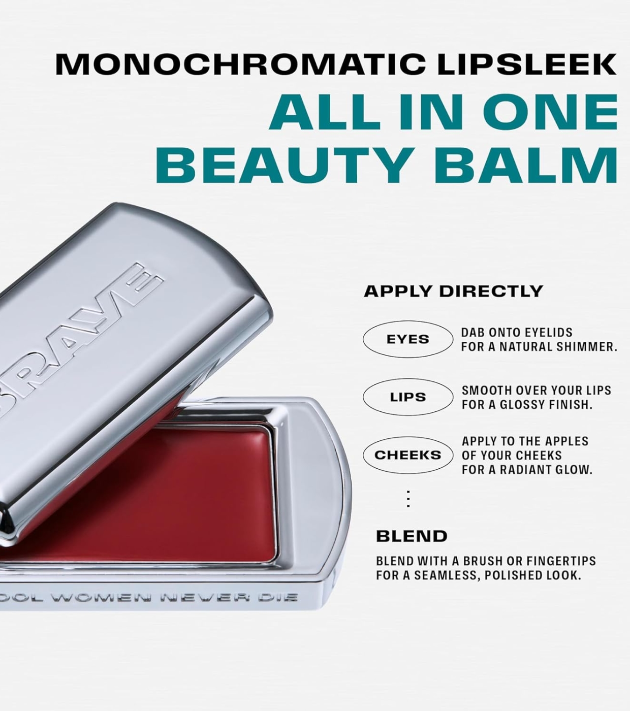 Lipsleek de BRAYE est un baume multifonction pour les lèvres et les joues qui hydrate en profondeur et offre une couleur douce et modulable avec un fini semi-mat velouté.