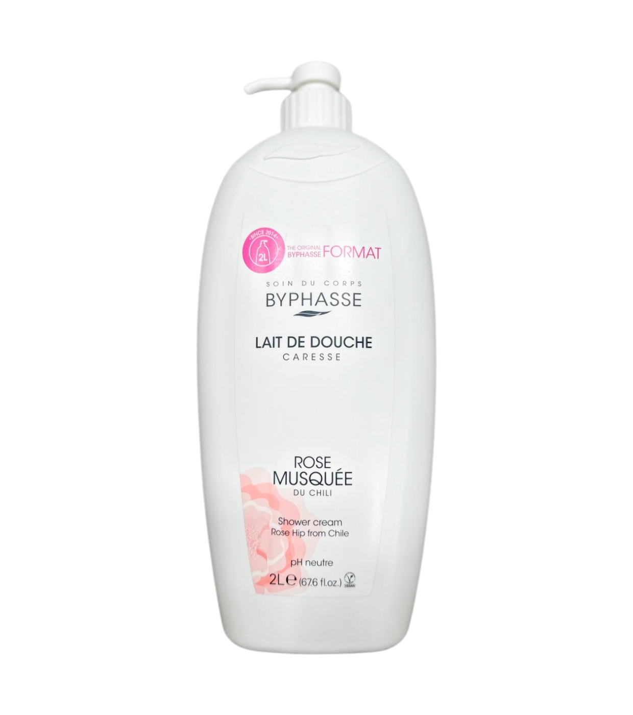 Gel douche Caresse à l'extrait d'huile de rose musquée du Chili qui nettoie en douceur votre peau.