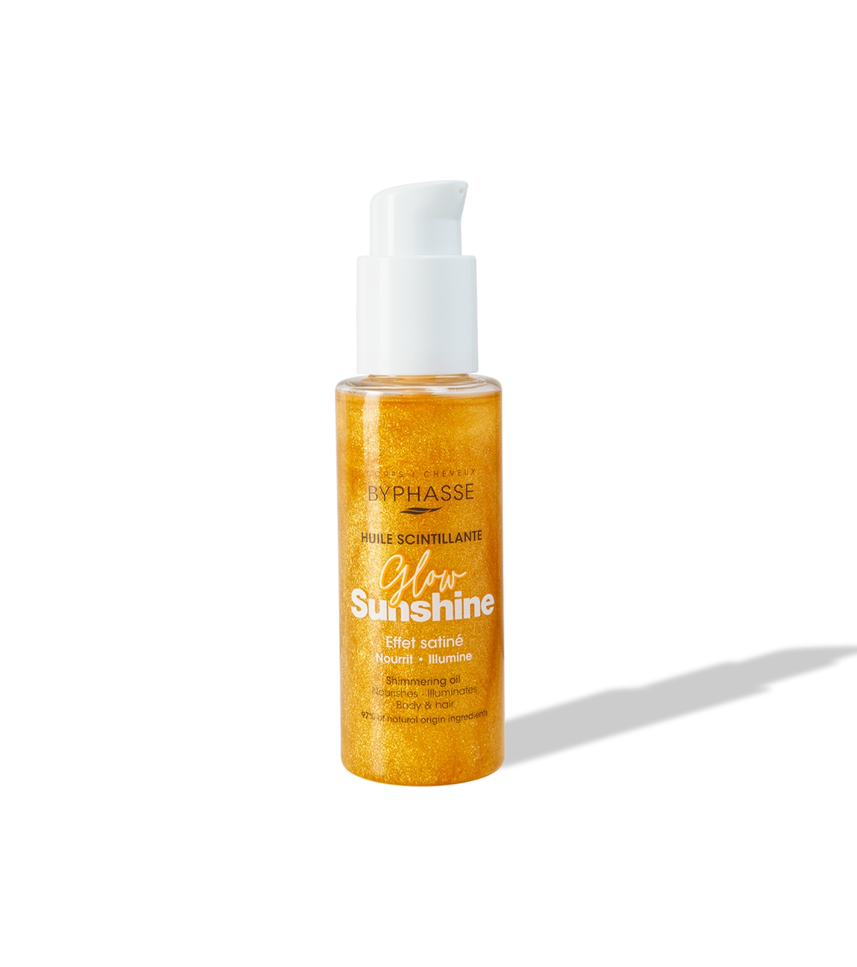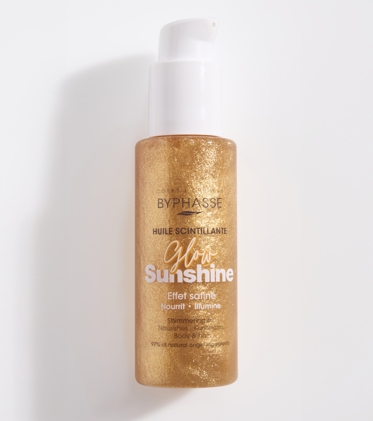 L'huile brillante Sugar Glow de Byphasse nourrit la peau et les cheveux, les laissant lumineux, doux et sublimes avec un fini éclatant et délicat.