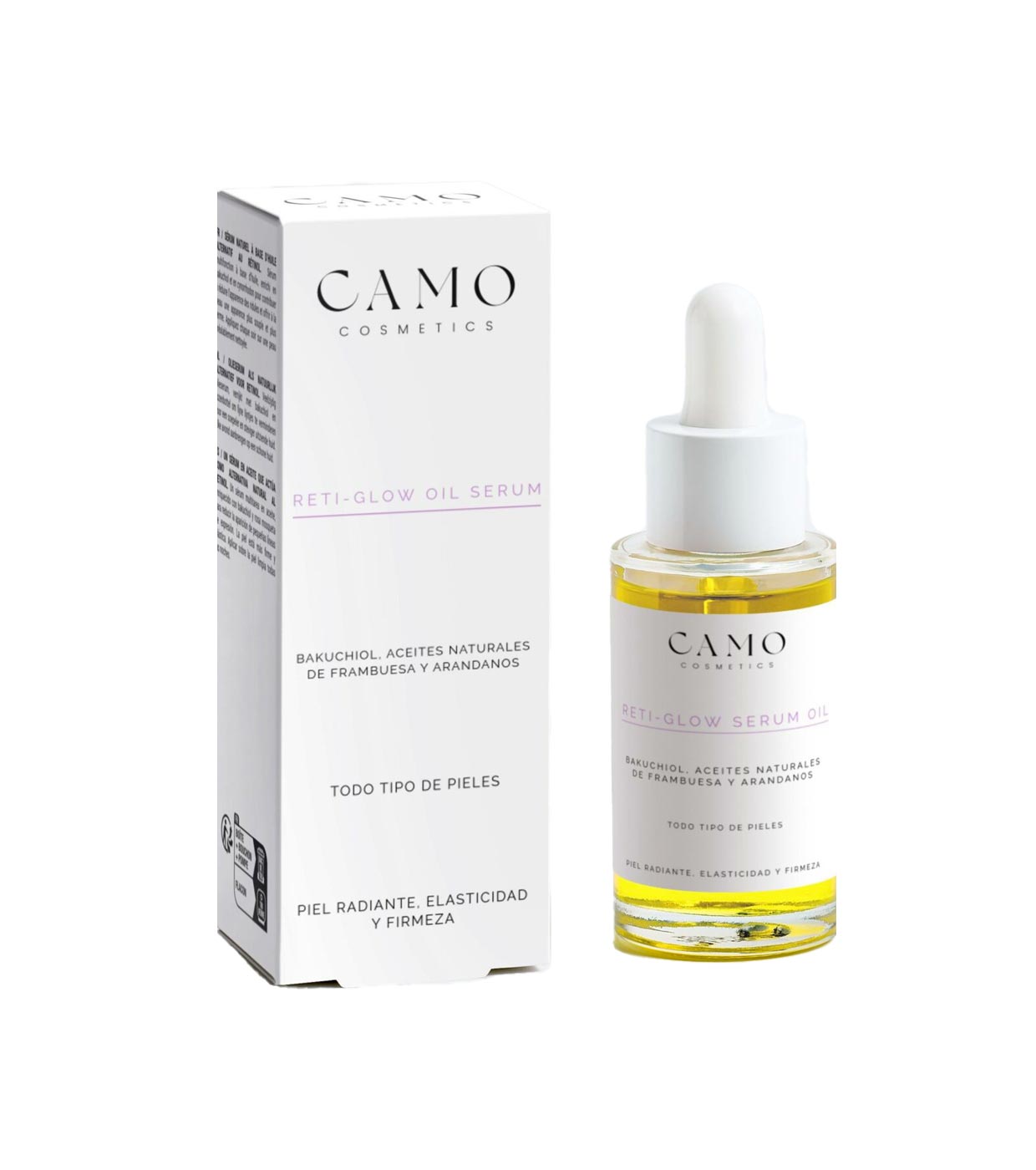 Reti-Glow Serum Oil Bakuchiol, Huiles naturelles de framboise et de myrtille de Camo Cosmetics.
