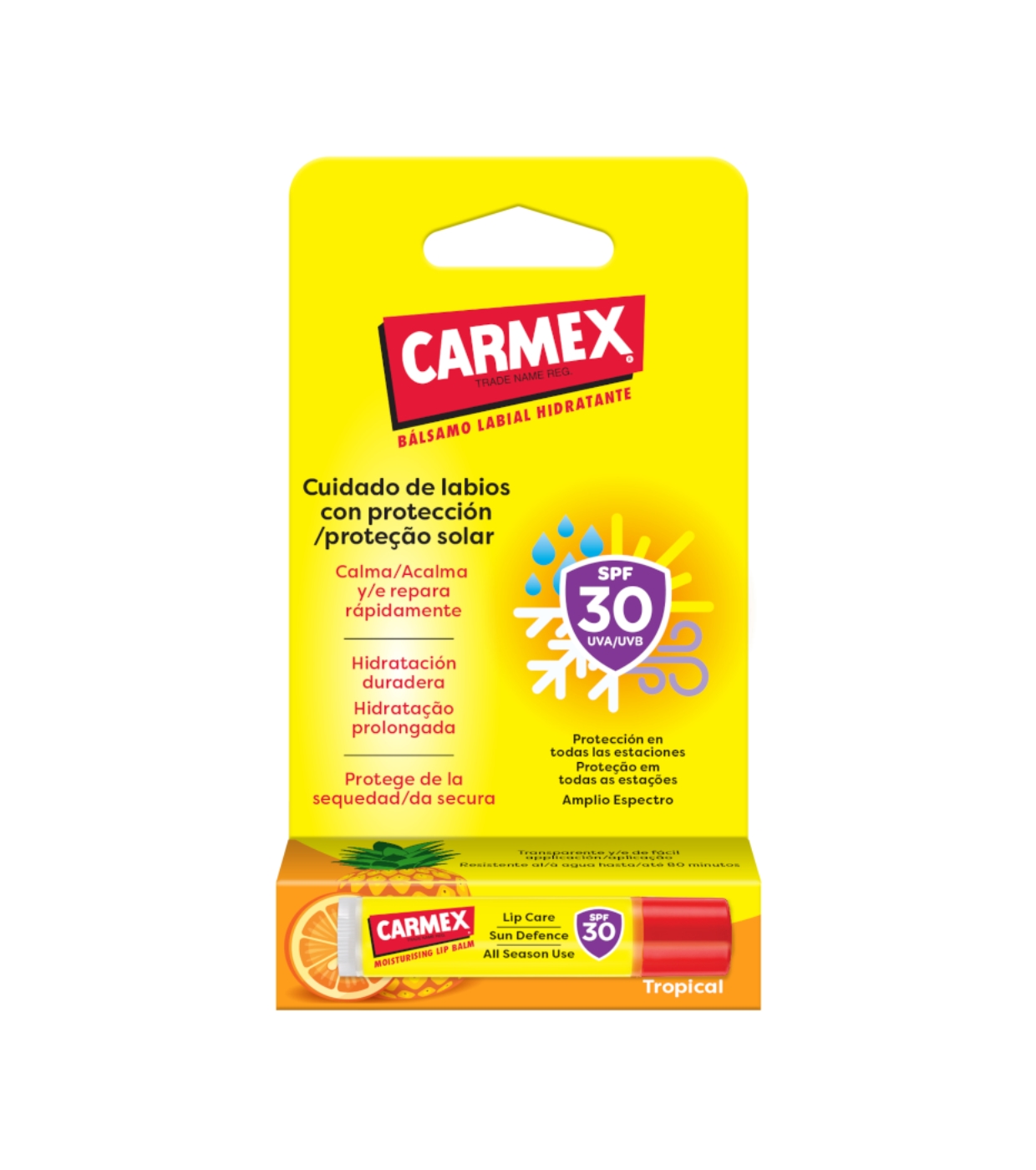 Découvrez la solution idéale pour des lèvres douces, hydratées et protégées avec le baume à lèvres Carmex Tropical SPF 30 .