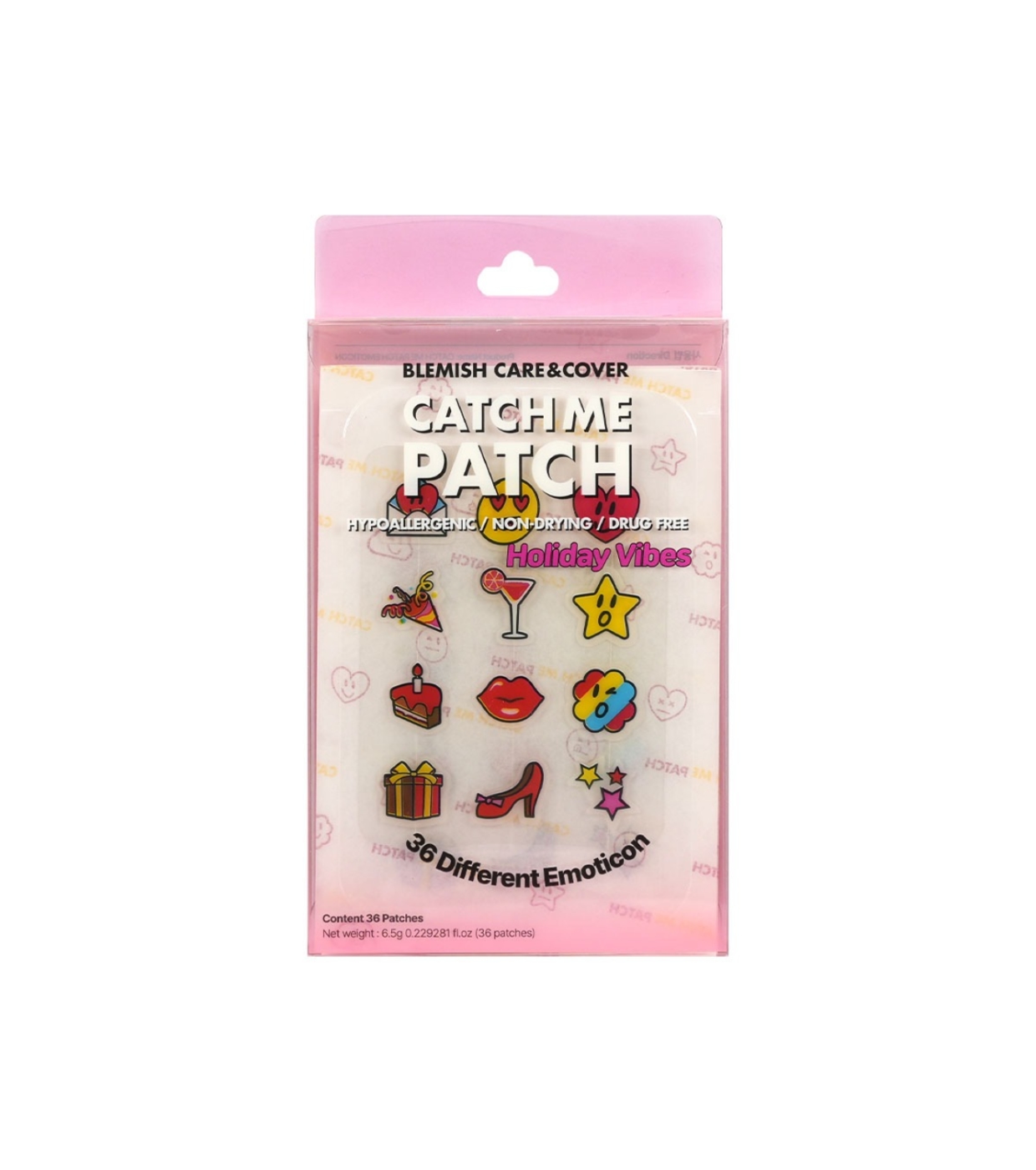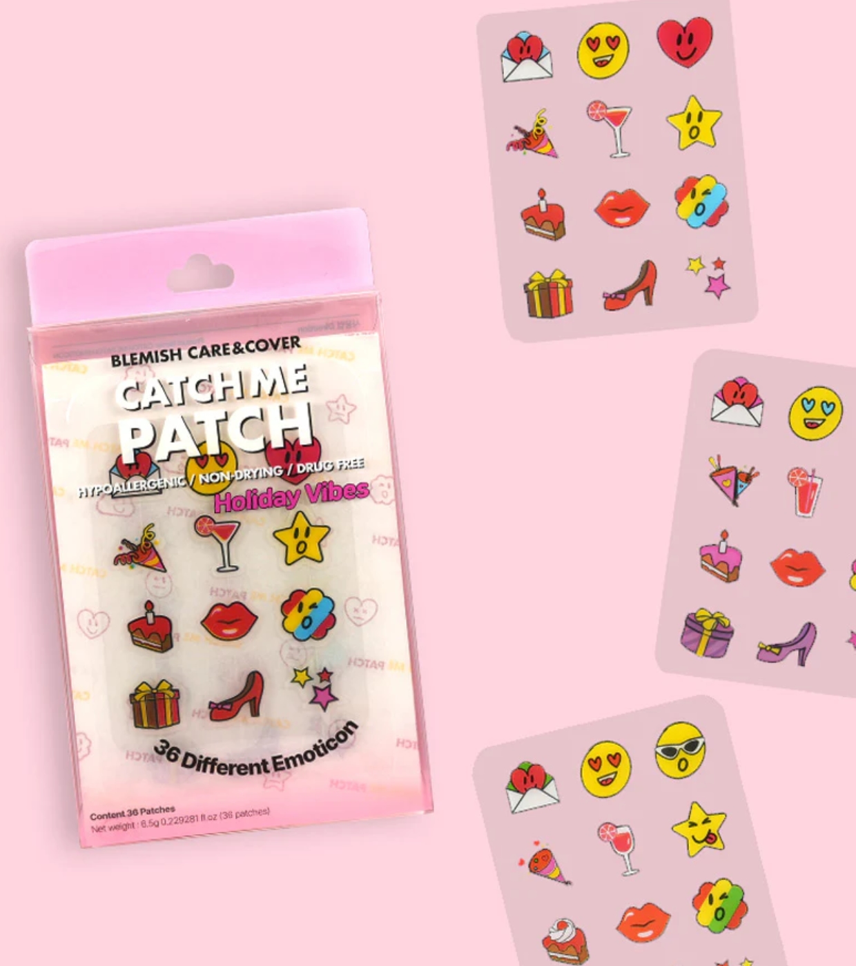 Holiday Vibes patchs anti-imperfections de Catch Me Patch , un patch hydrocolloïde pour les imperfections qui aide à traiter les boutons et les petites lésions cutanées tout en protégeant la peau.
