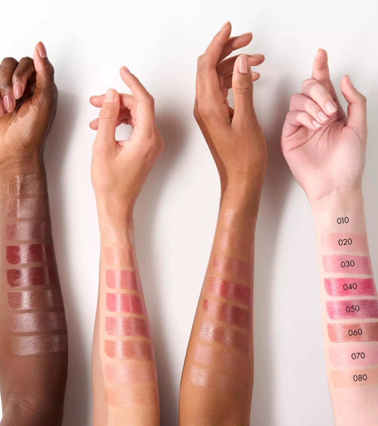 Ce baume à lèvres est disponible en différentes teintes et contient du beurre de karité et du beurre de cacao pour nourrir vos lèvres en profondeur.