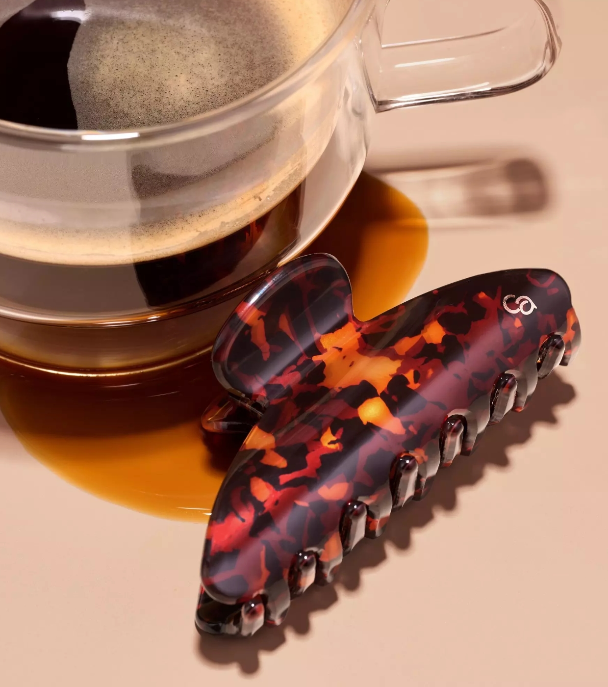 Inspiré par la douceur d'un cappuccino et l'intensité d'un expresso, ce clip combine des tons marron clair et foncé dans une finition marbrée brillante, parfaite pour ajouter une touche de style à votre look quotidien.