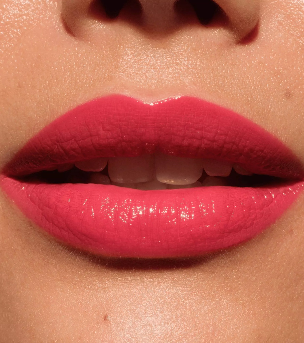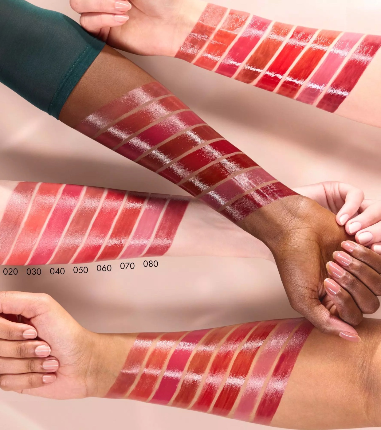 Cette teinte à lèvres offre un fini brillant et translucide, laissant une couleur vibrante avec un effet naturel et lumineux.
