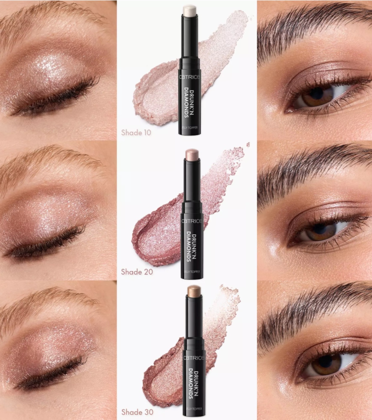 Sublimez votre maquillage des yeux ! Le Catrice Drunk'n Diamonds Jelly Topper transforme votre regard d'un éclat lumineux et multidimensionnel grâce à ses perles irisées et sa texture gélifiée extensible.