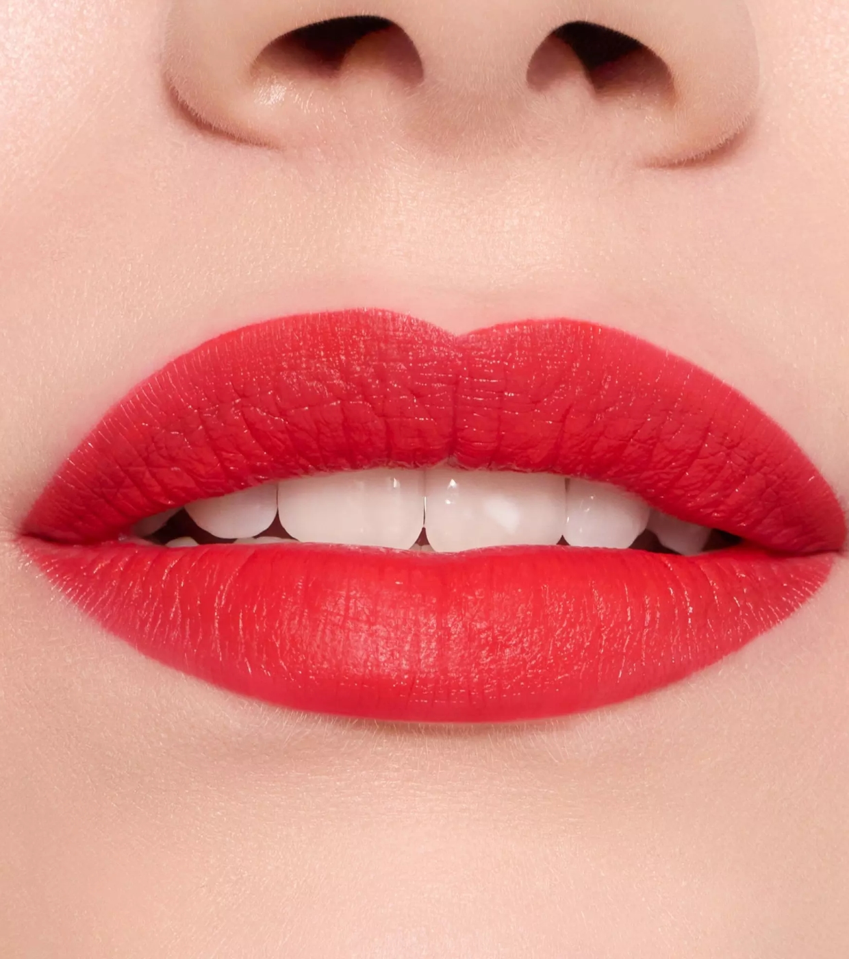 Sa formule légère et longue tenue glisse en douceur sur les lèvres pour un fini mat velouté qui ne se transfère pas et ne sèche pas.