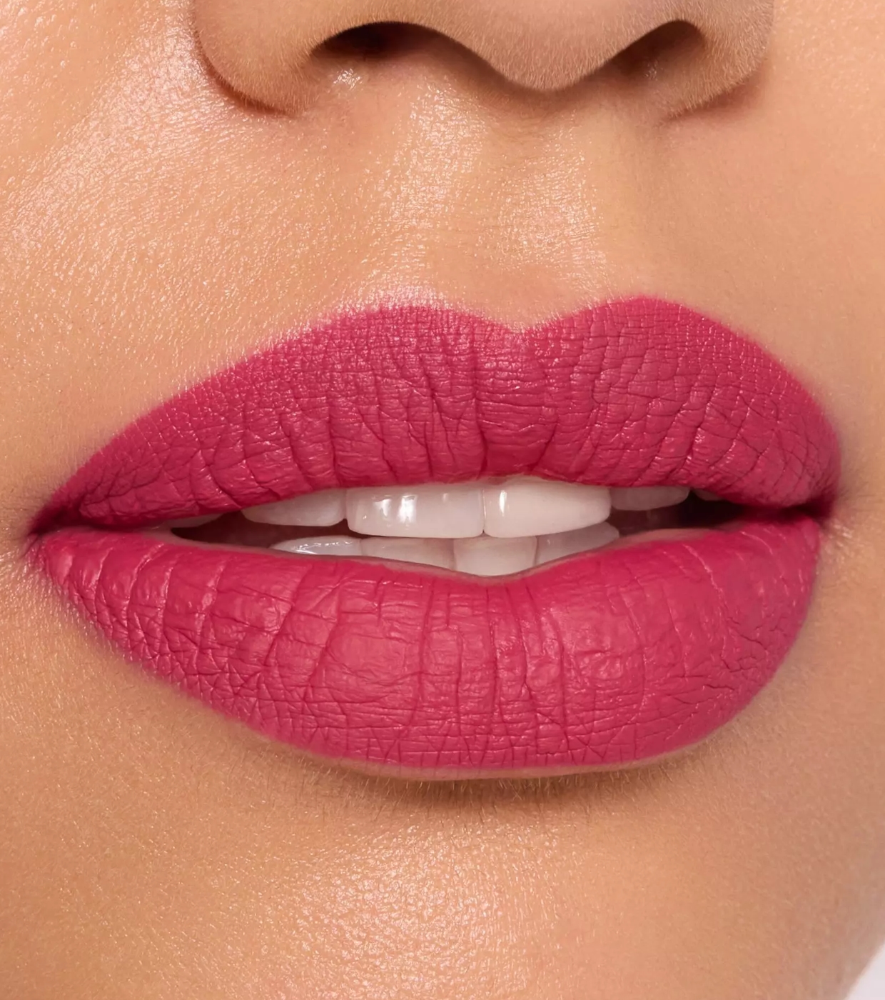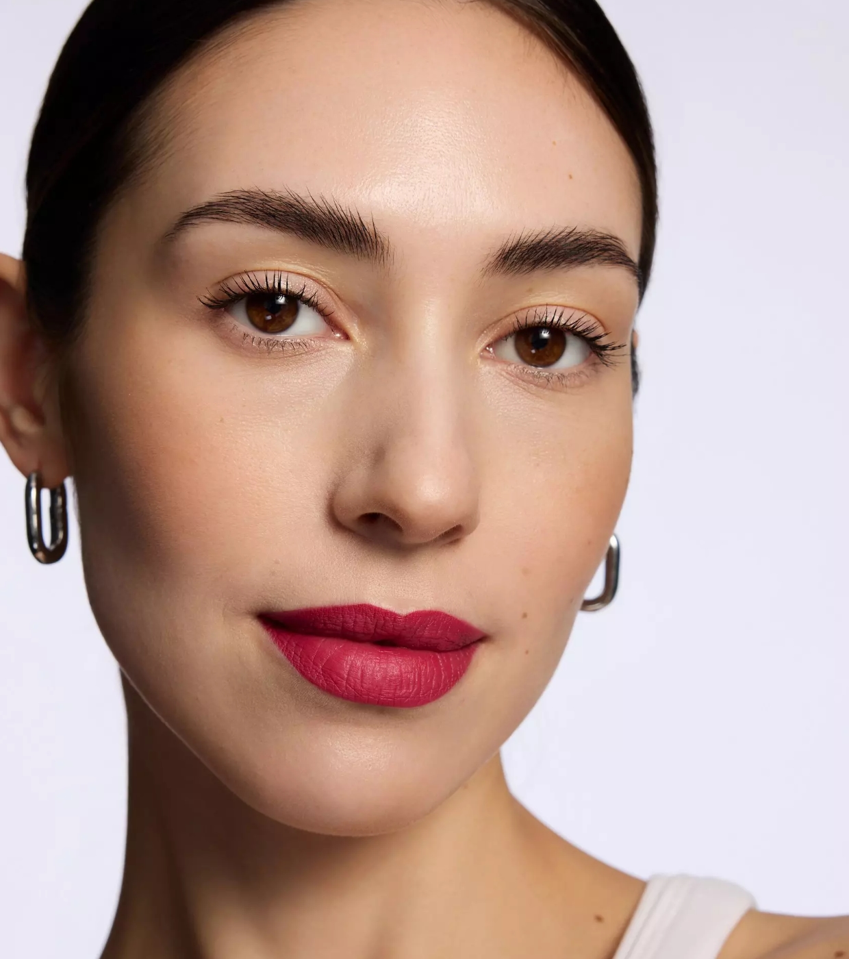 Sa formule légère et longue tenue glisse en douceur sur les lèvres pour un fini mat velouté qui ne se transfère pas et ne sèche pas.