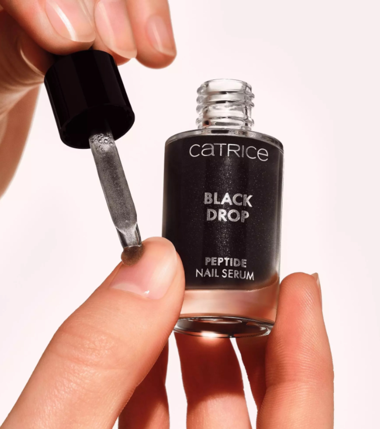 La beauté rencontre le soin avec une touche audacieuse grâce au Black Drop Peptide Nail Serum de Catrice .