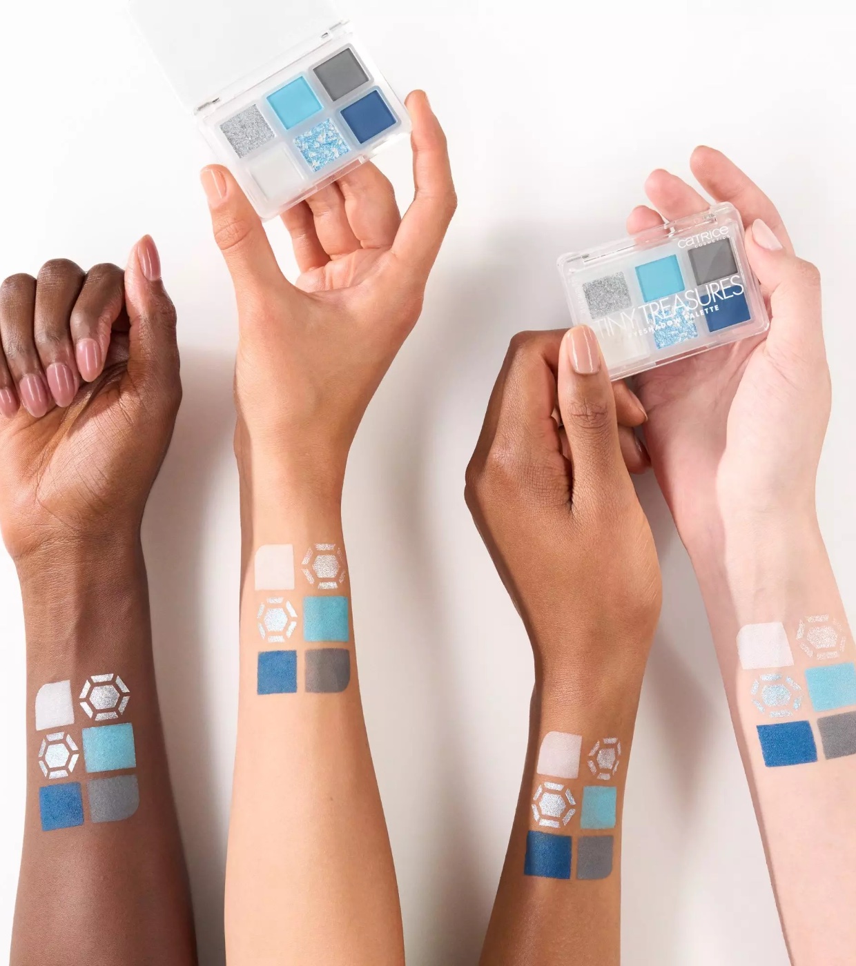Découvrez la palette de fards à paupières Tiny Treasures 040 Icy Whisper de Catrice, une mini palette de fards à paupières avec une combinaison polyvalente de tons froids, parfaite pour toutes les occasions.