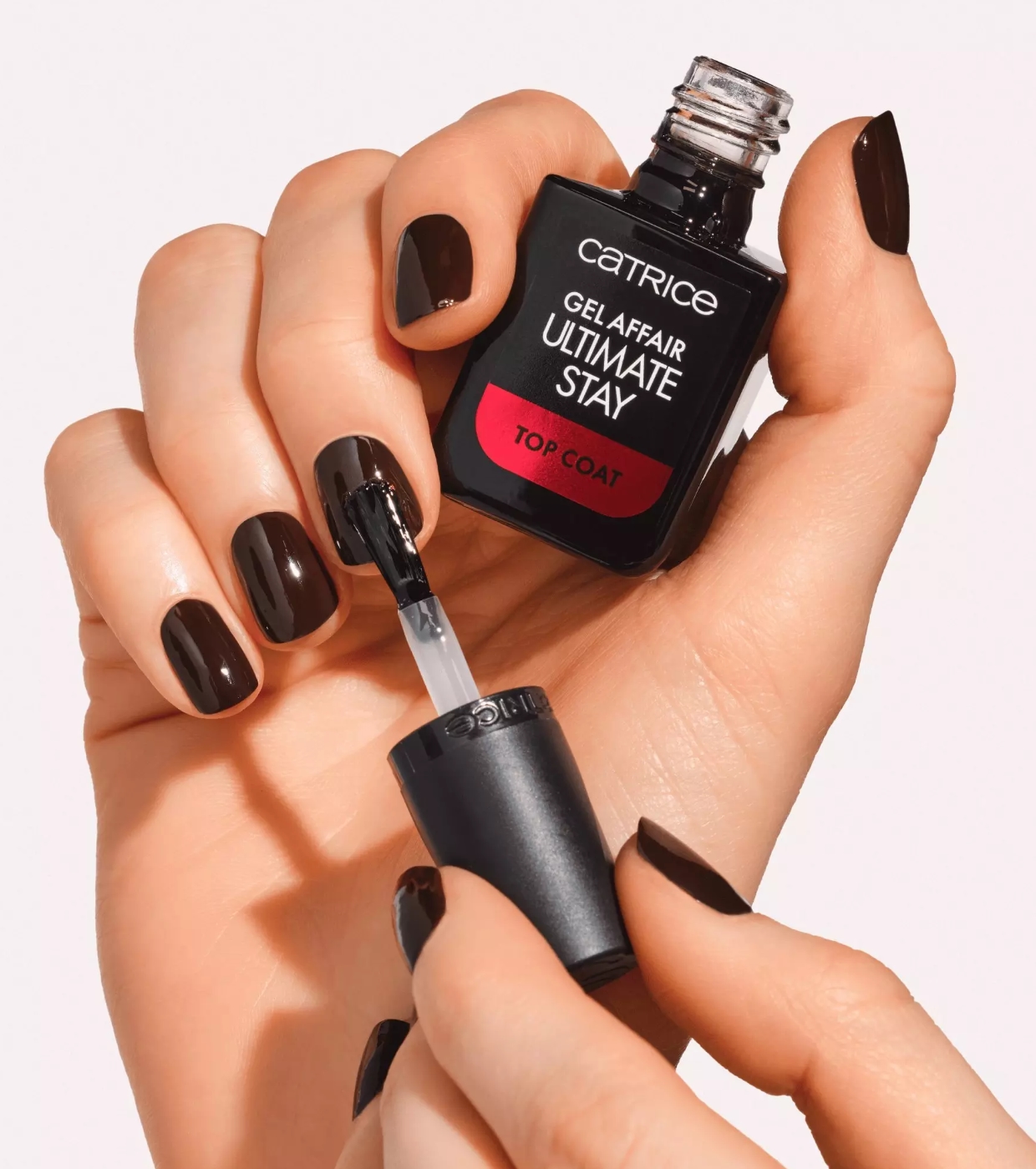 Concluez l'affaire avec votre manucure gel parfaite ! Catrice Gel Affair Ultimate Stay Top Coat offre une finition ultra-brillante et volumineuse tout en prolongeant la tenue de votre vernis à ongles - aucune lampe UV requise !